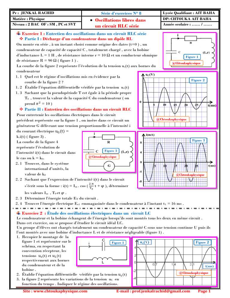 circuit RLC série libre, un élève a monté à un instant considéré comme origine du temps (t=0)