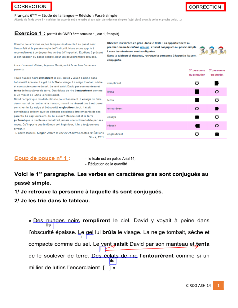 Verbe conjugué du texte.....................la personne.....................................Infinitif