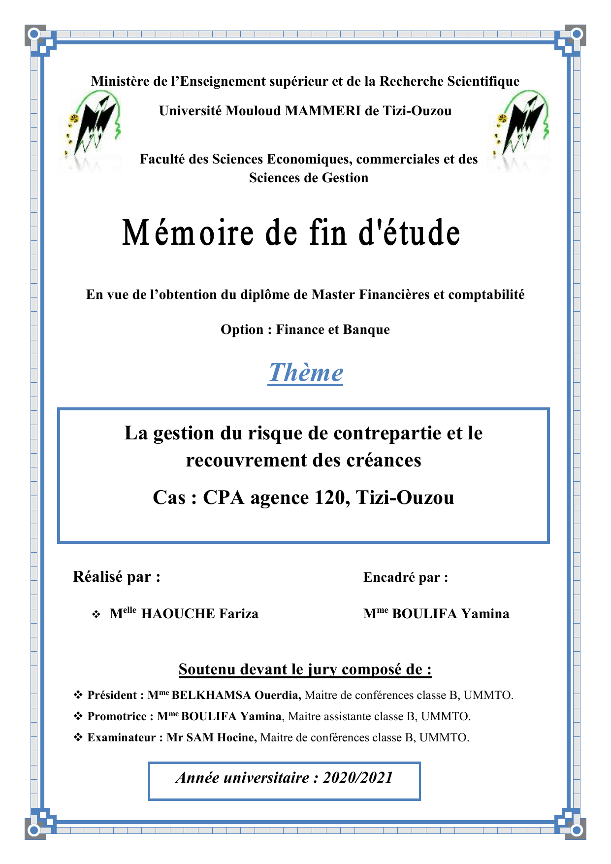 Promotrice : Mme BOULIFA Yamina, Maitre assistante classe B, UMMTO.