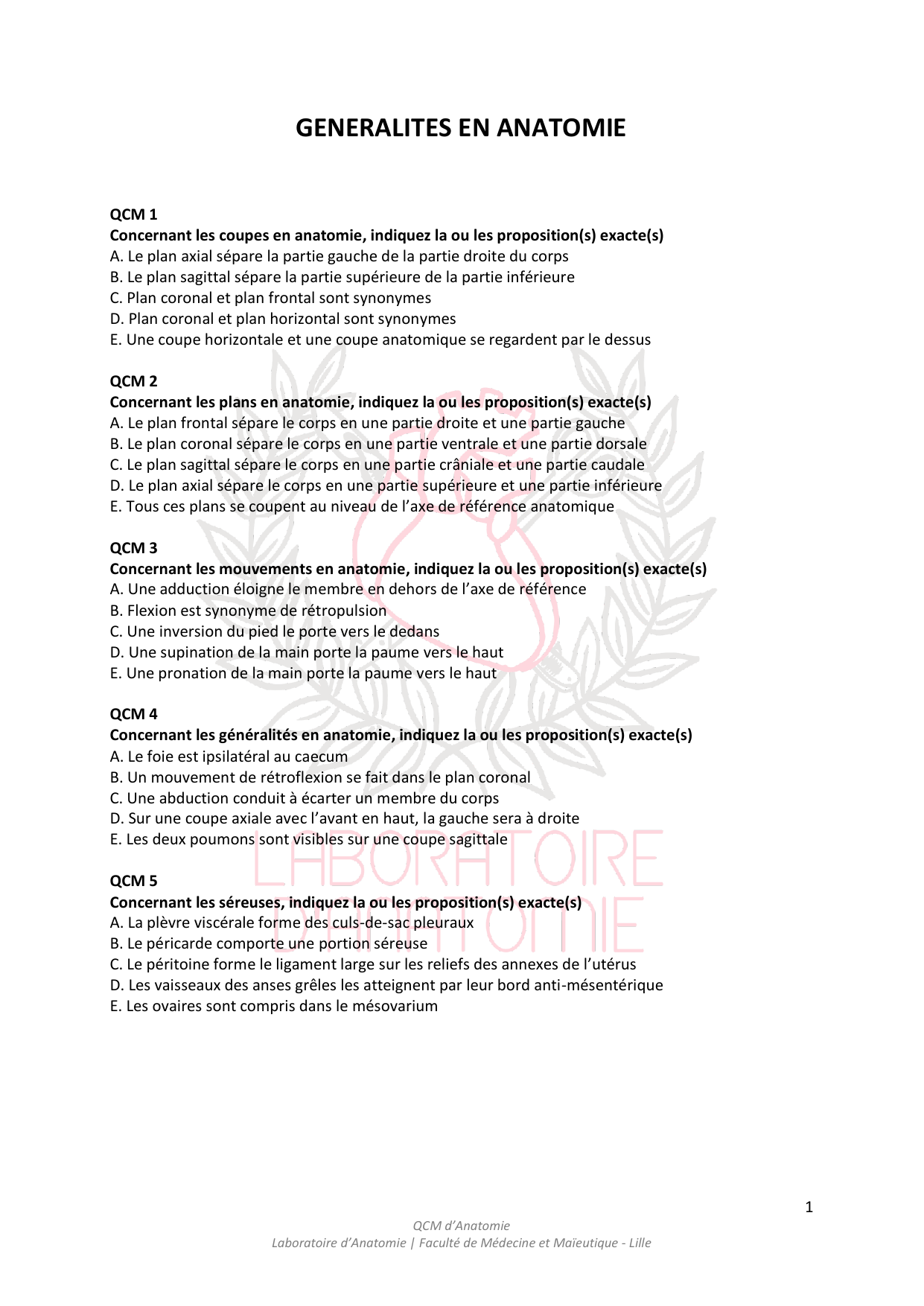 QCM d’Anatomie