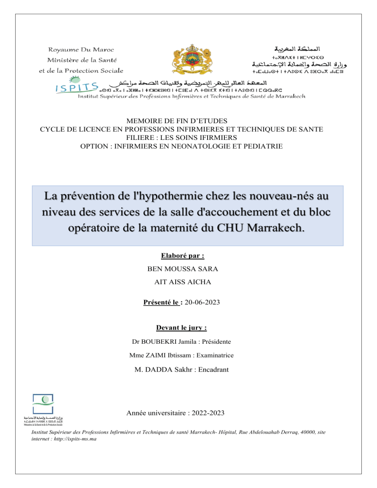 prévention et la prise en charge de l’hypothermie chez les nouveau-nés au niveau du service de la