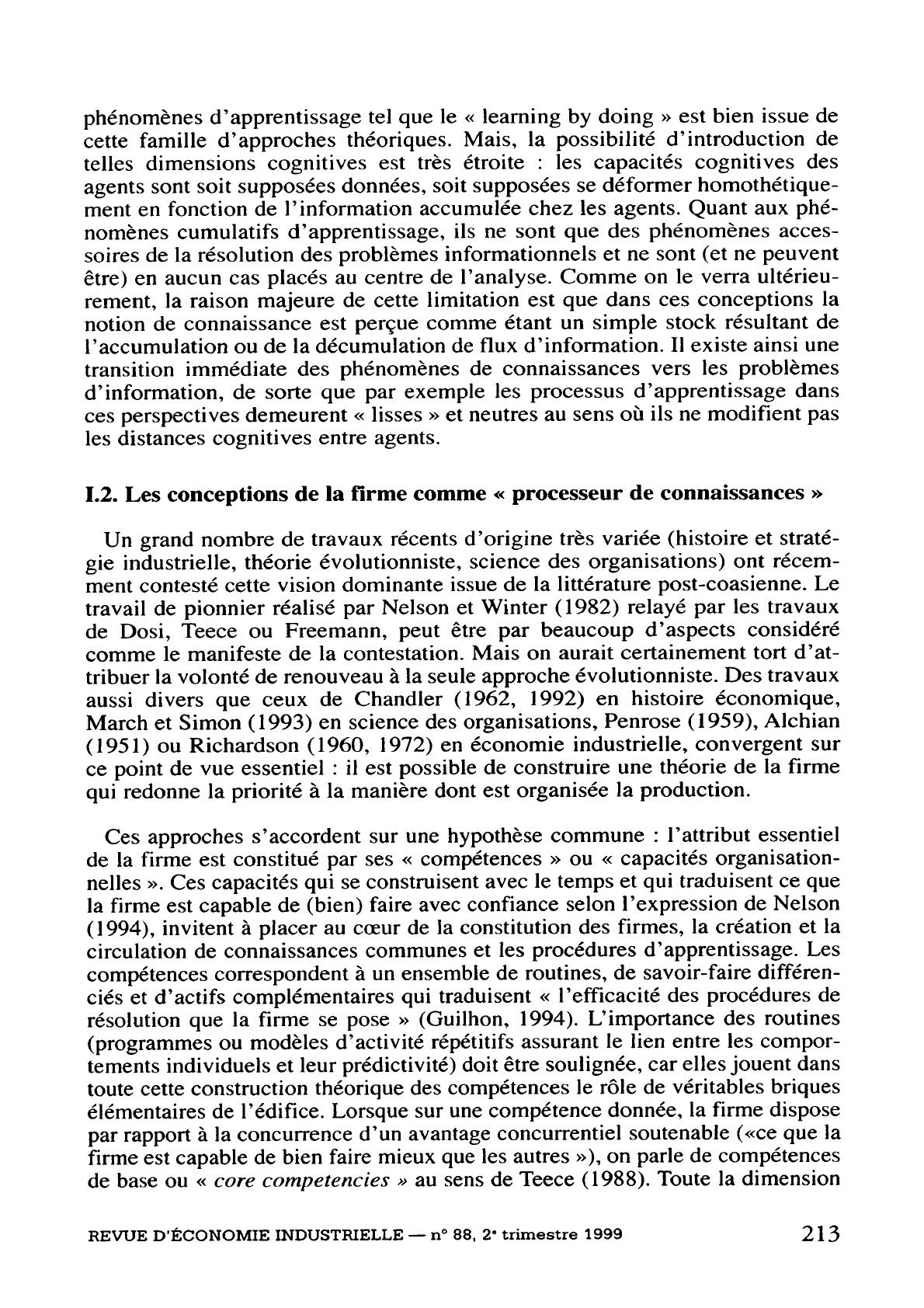 industrielle, vol. 88, 2e trimestre 1999. Économie de la connaissance. pp. 211-235;