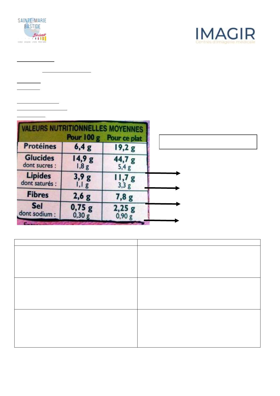 1. Calculer les quantités en protéines, lipides et glucides apportées par chaque aliment
