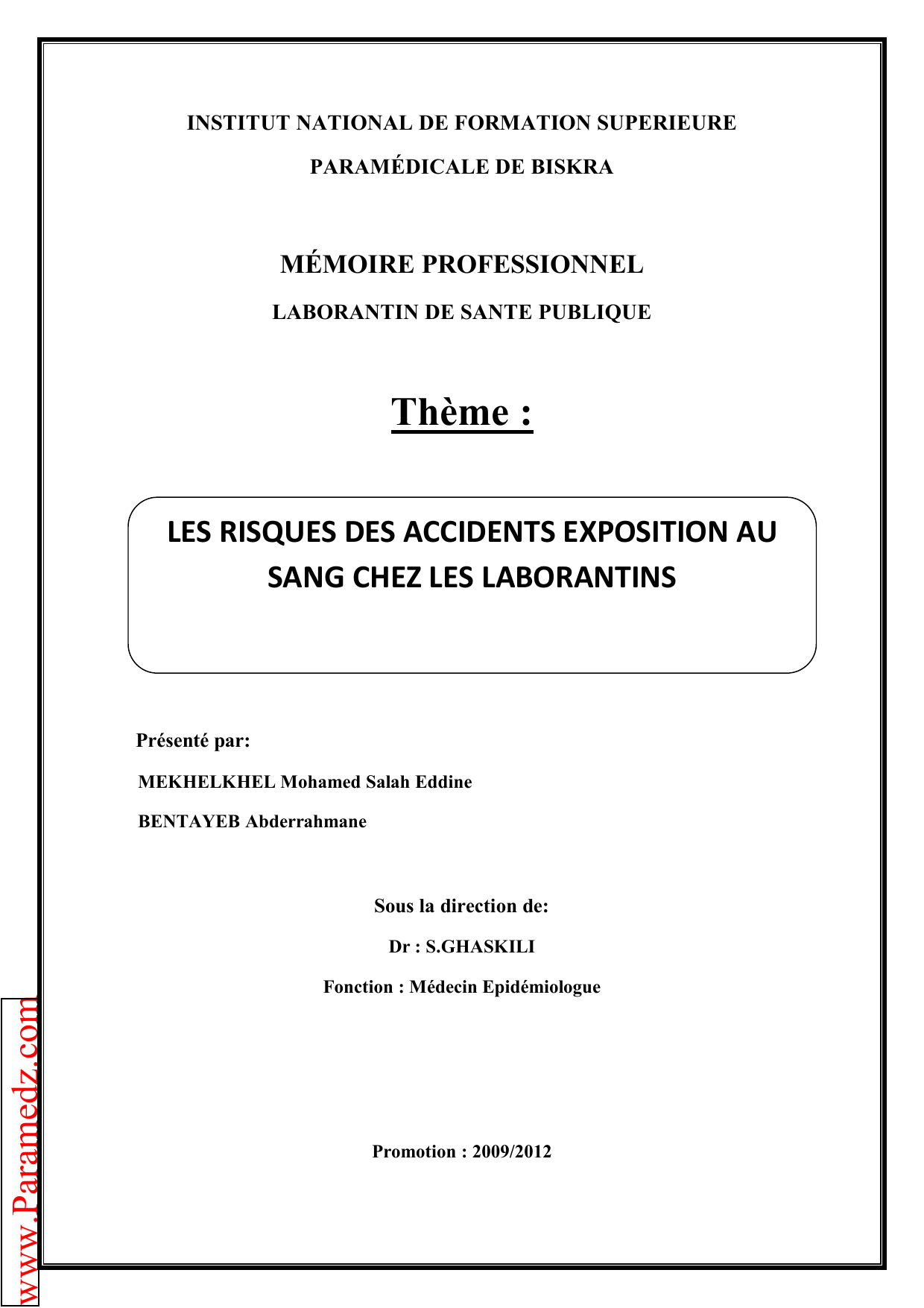 Nous avons choisi ce thème, le risque d’accident d’exposition au sang chez les