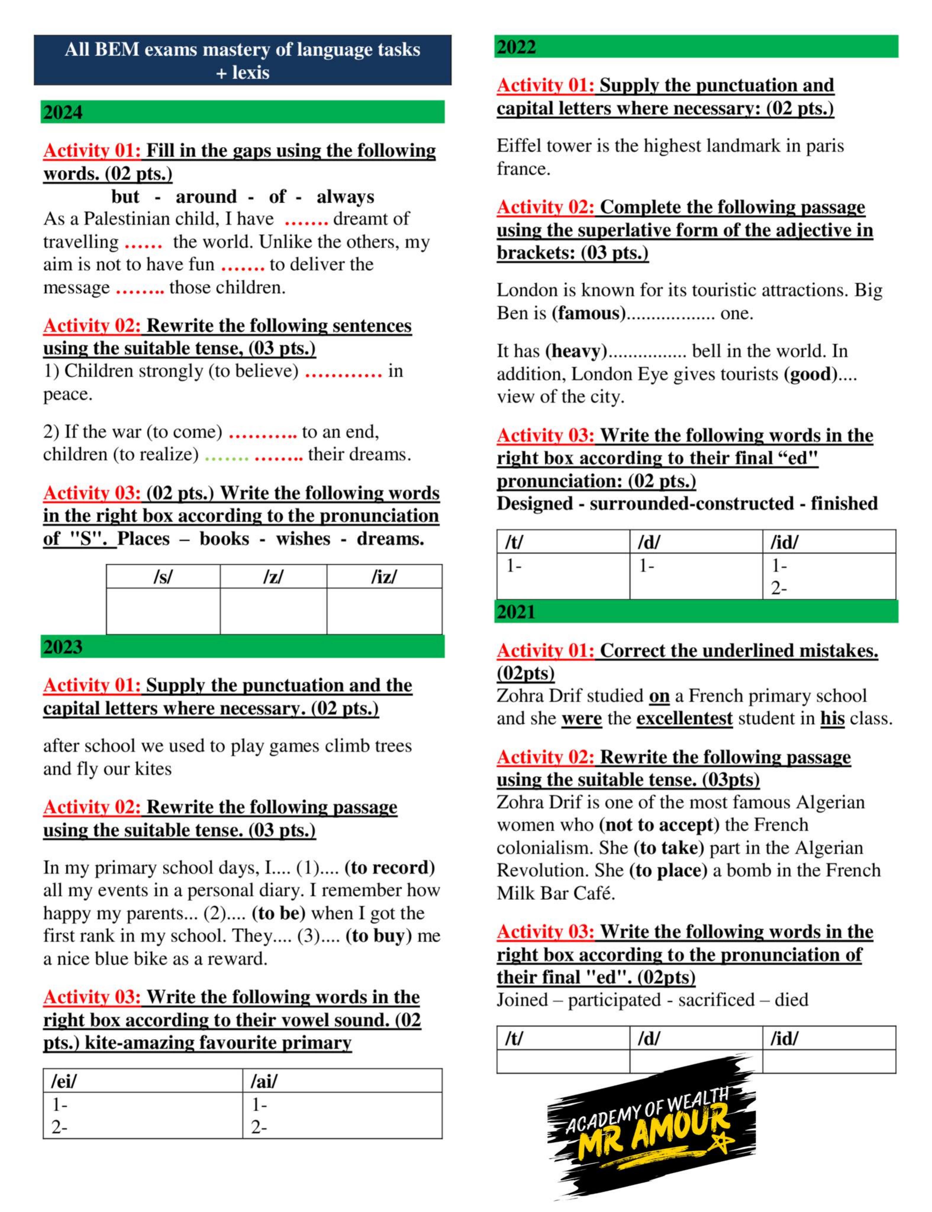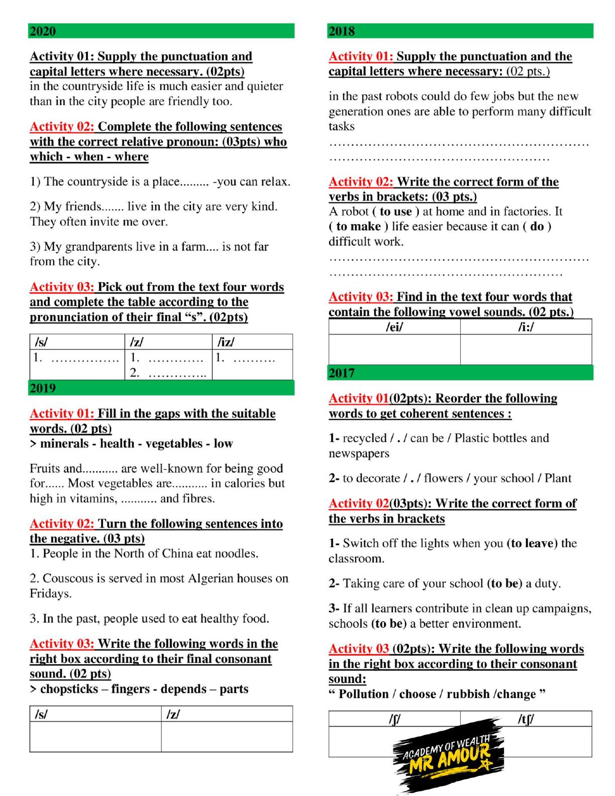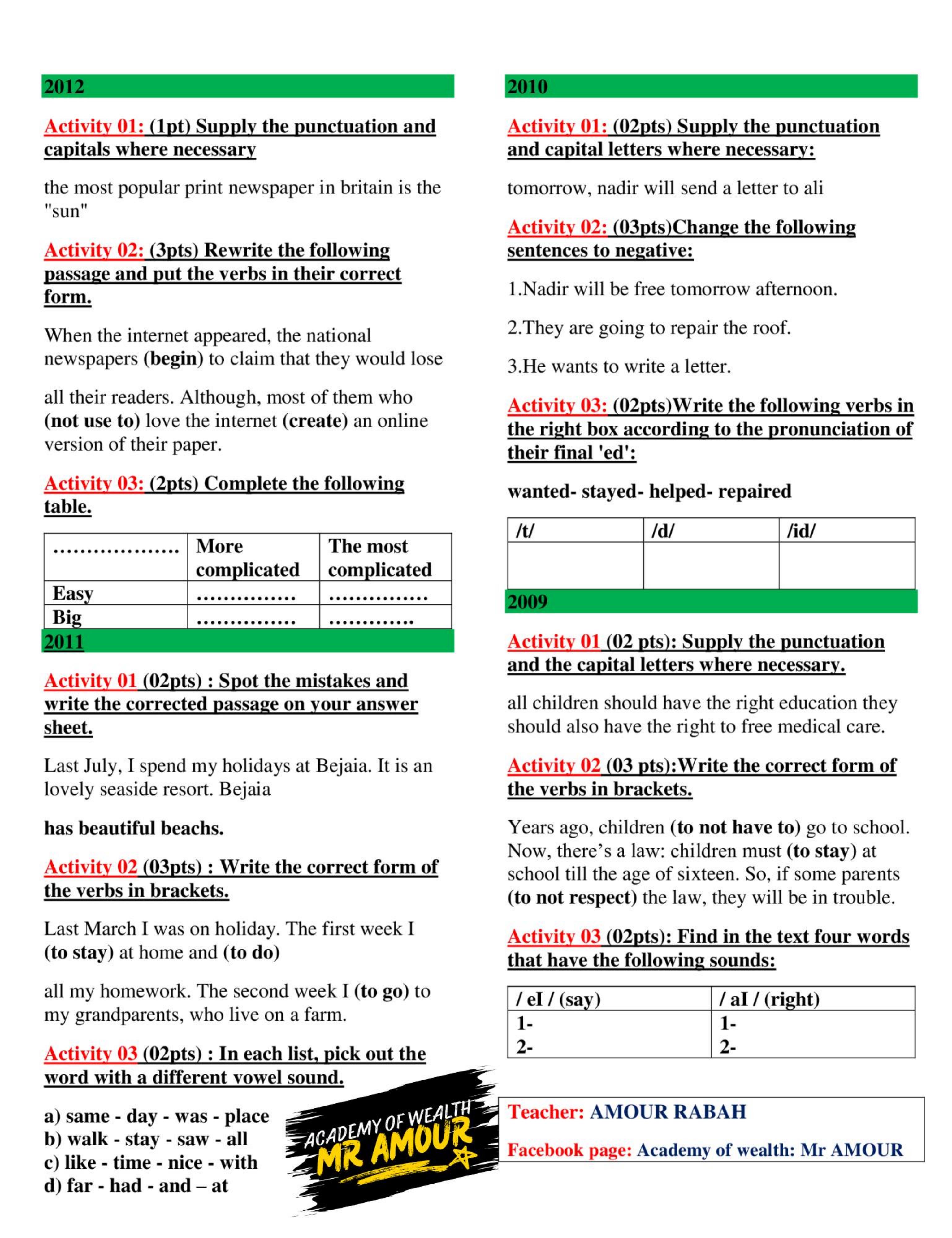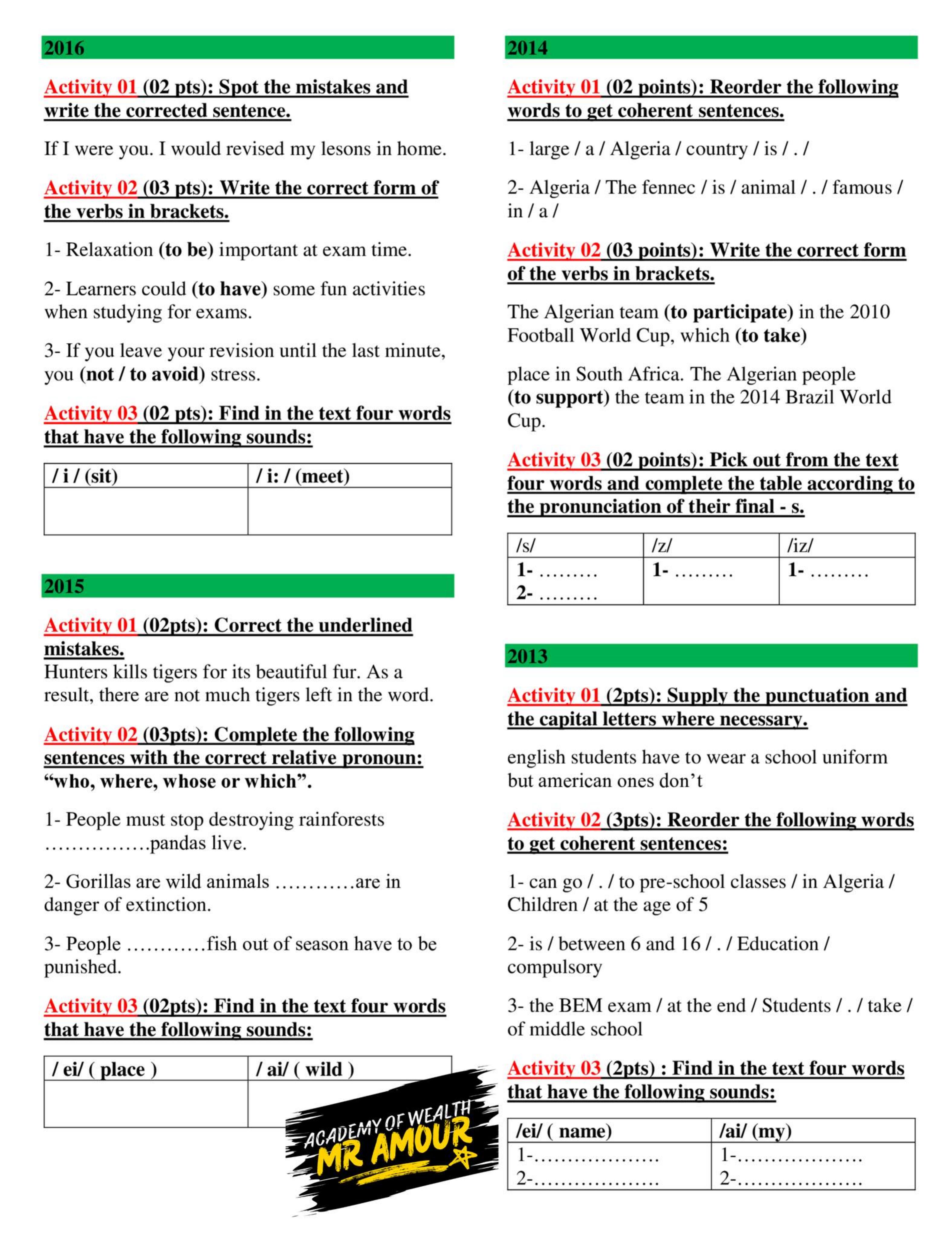 Exercices d'anglais collège/lycée : grammaire et vocabulaire