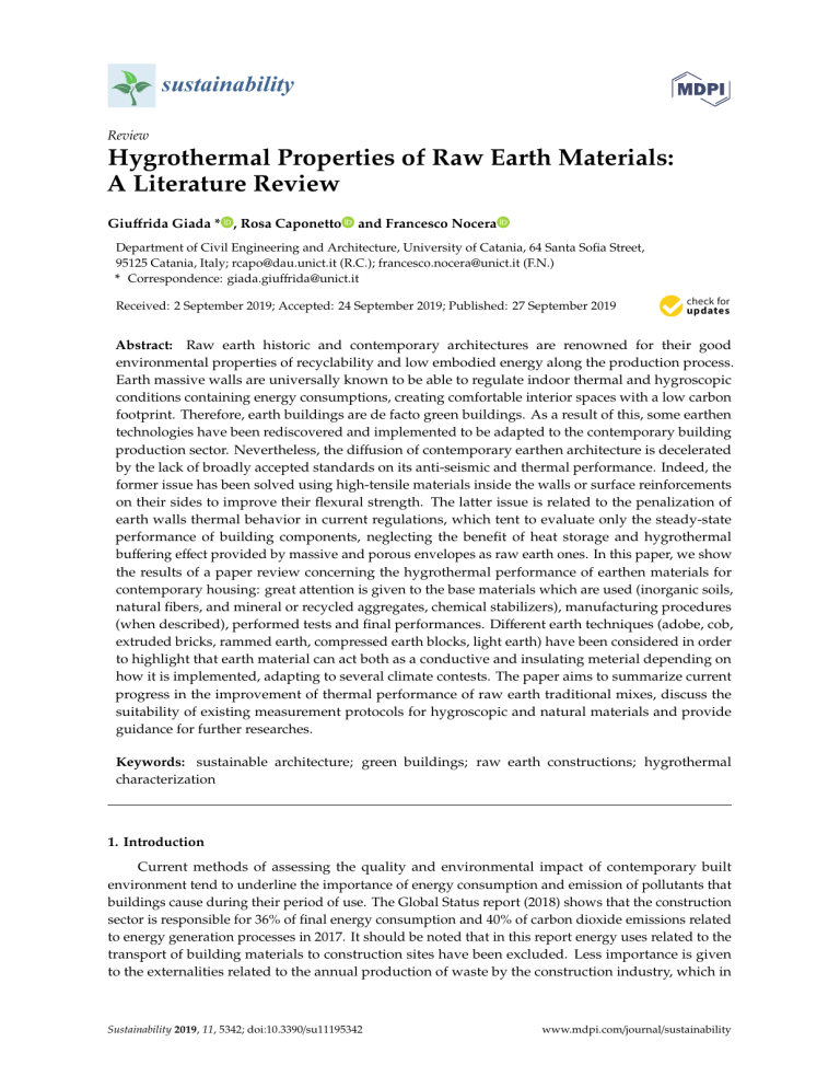 thermal one is often neglected. Questions about the assessment of raw earth materials performances