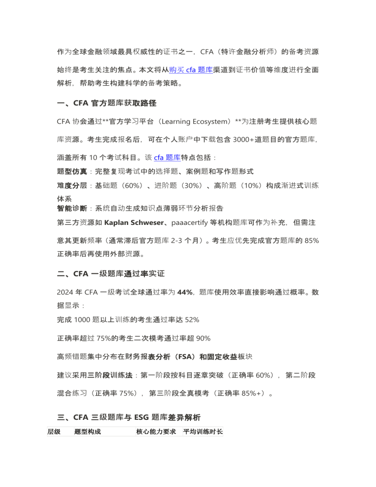 始终是考生关注的焦点。本文将从购买 cfa 题库渠道到证书价值等维度进行全面