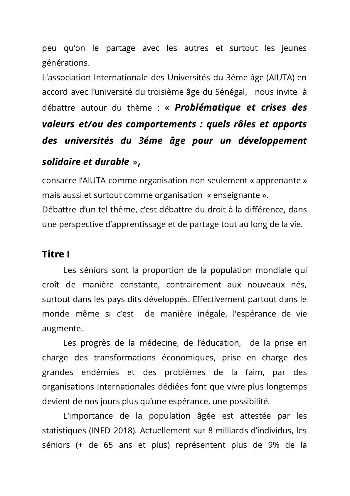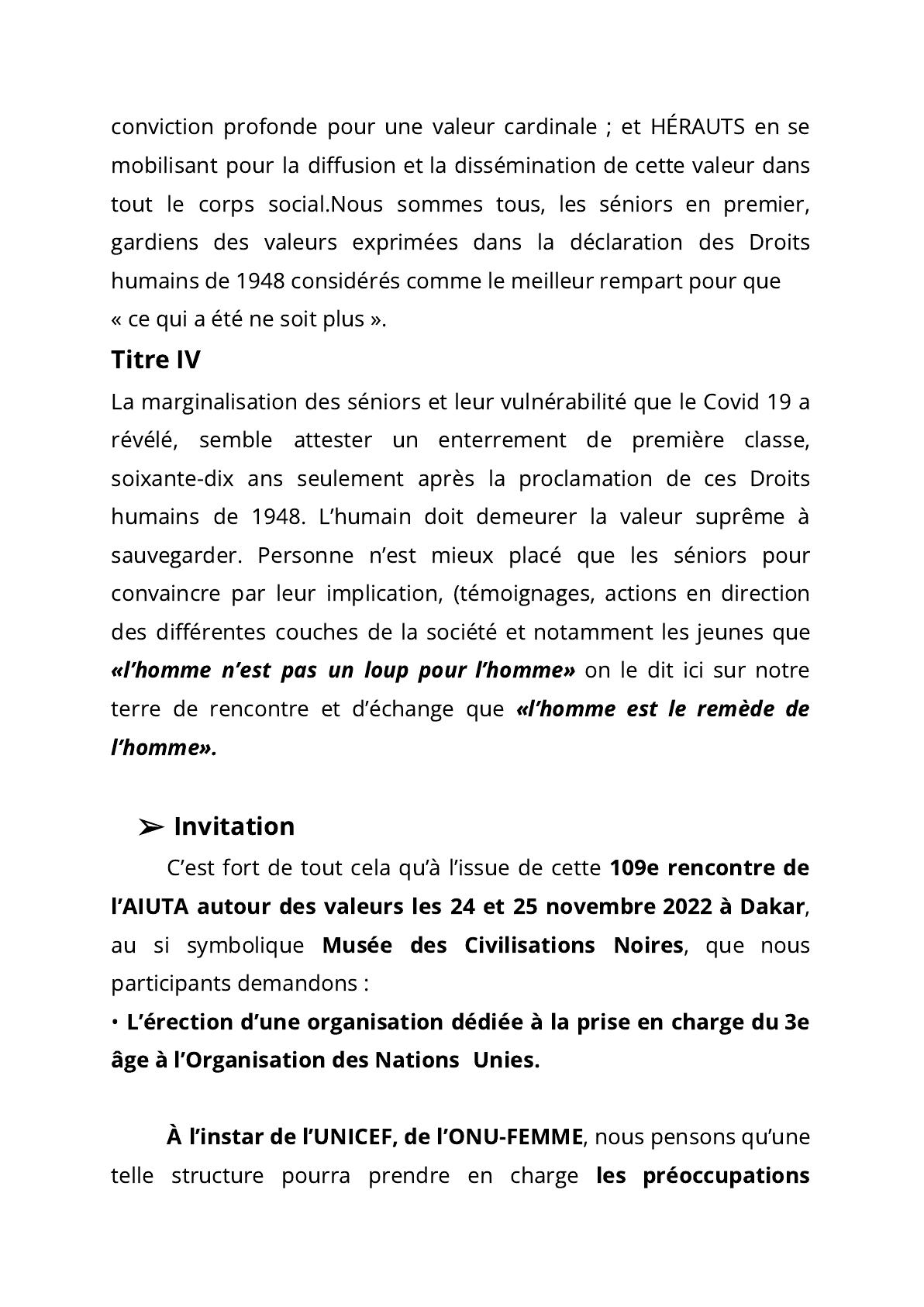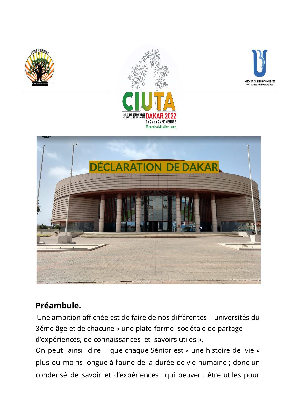 Déclaration de Dakar : Séniors, Valeurs et Développement Durable