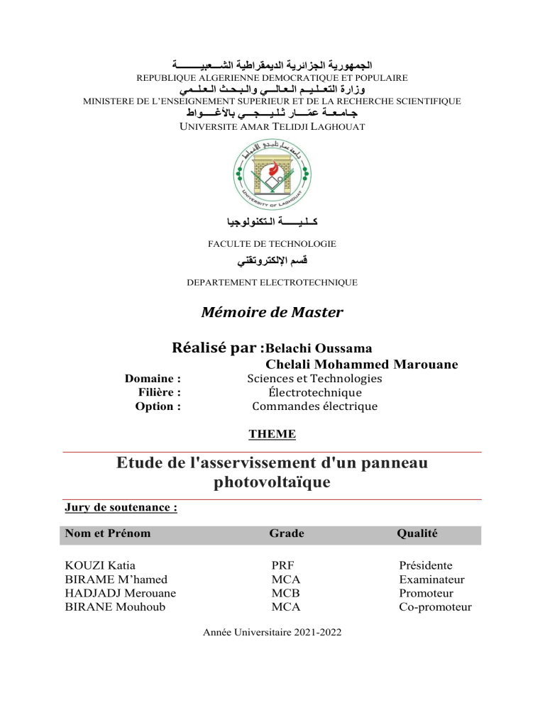 II.2. 3 Performances du système d'asservissement……………………………………………18