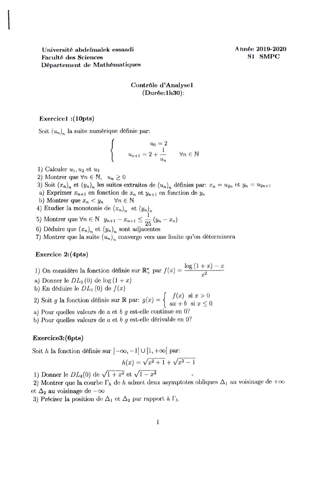 Examen d'Analyse L1 - Suites, DL, Fonctions