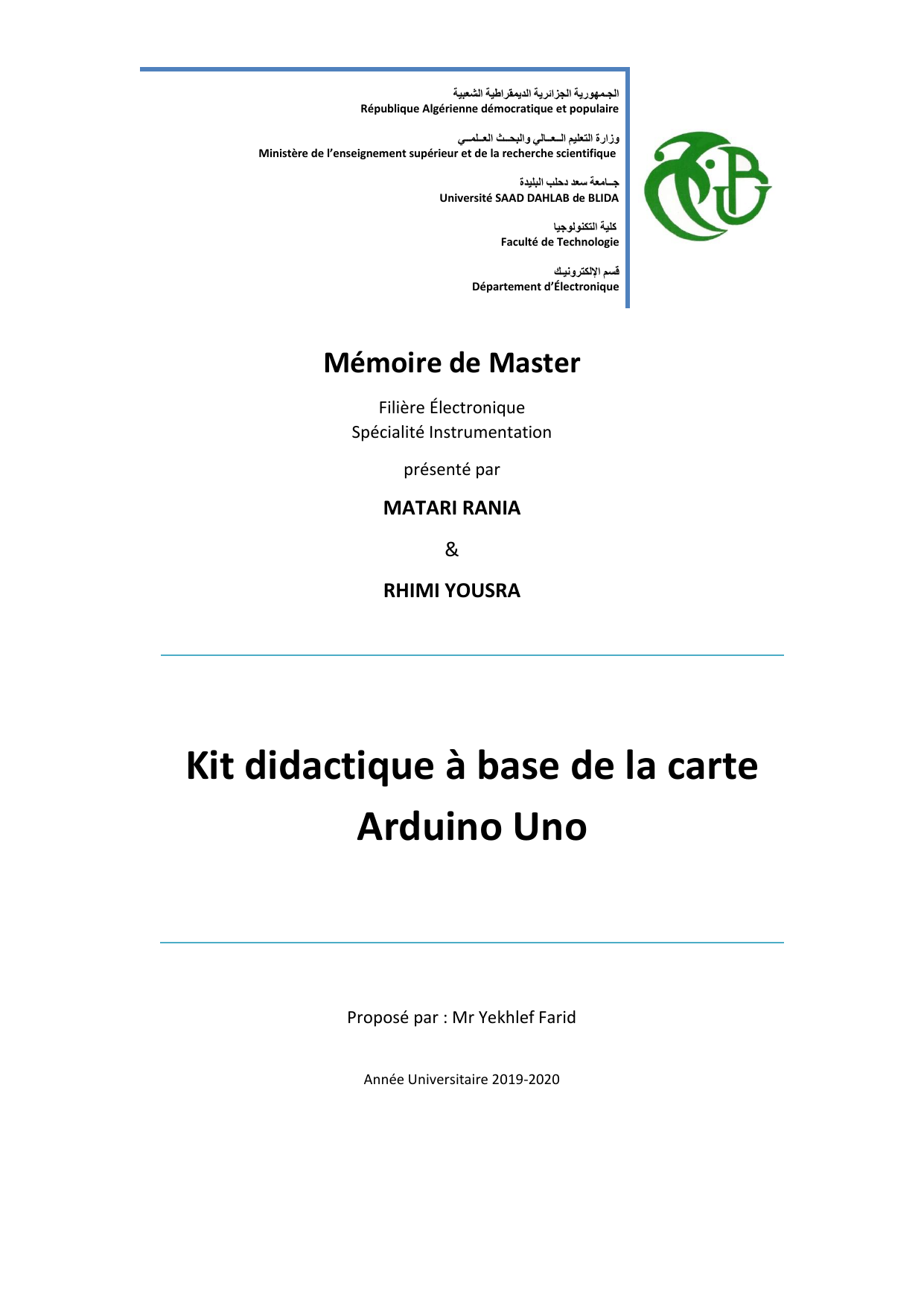 Kit Didactique Arduino Uno: Mémoire de Master en Électronique