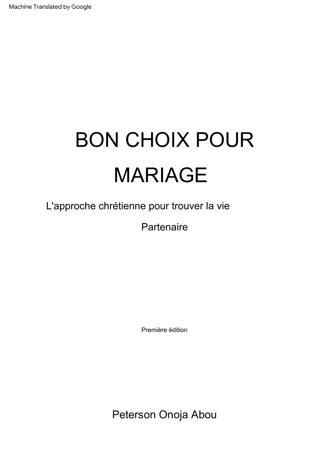 Bon Choix Pour Mariage: Approche Chrétienne pour Trouver un Partenaire