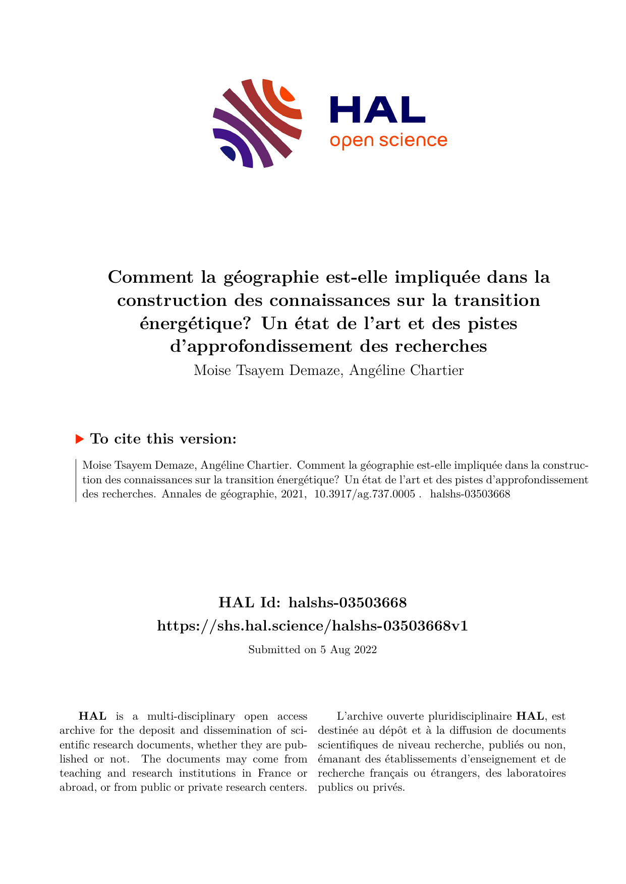 research on this field, so that a geography of the energy transition has emerged. The analysis of