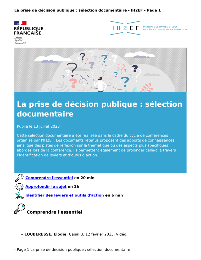 La prise de décision publique : sélection documentaire - IH2EF - Page 2