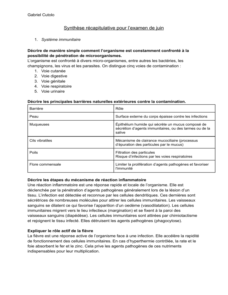 Face à la pénétration d’agents pathogènes à l’intérieur de l’organisme, plusieurs