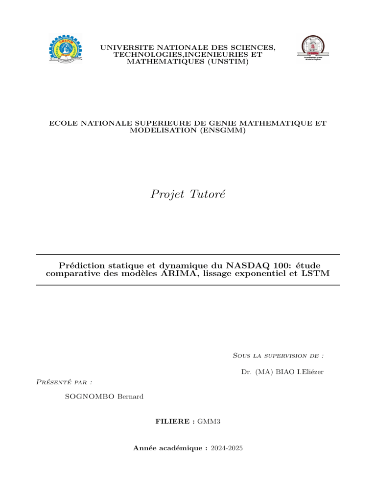 l’indice Nasdaq 100 par une approche comparative entre les modèles ARIMA, le lissage ex-