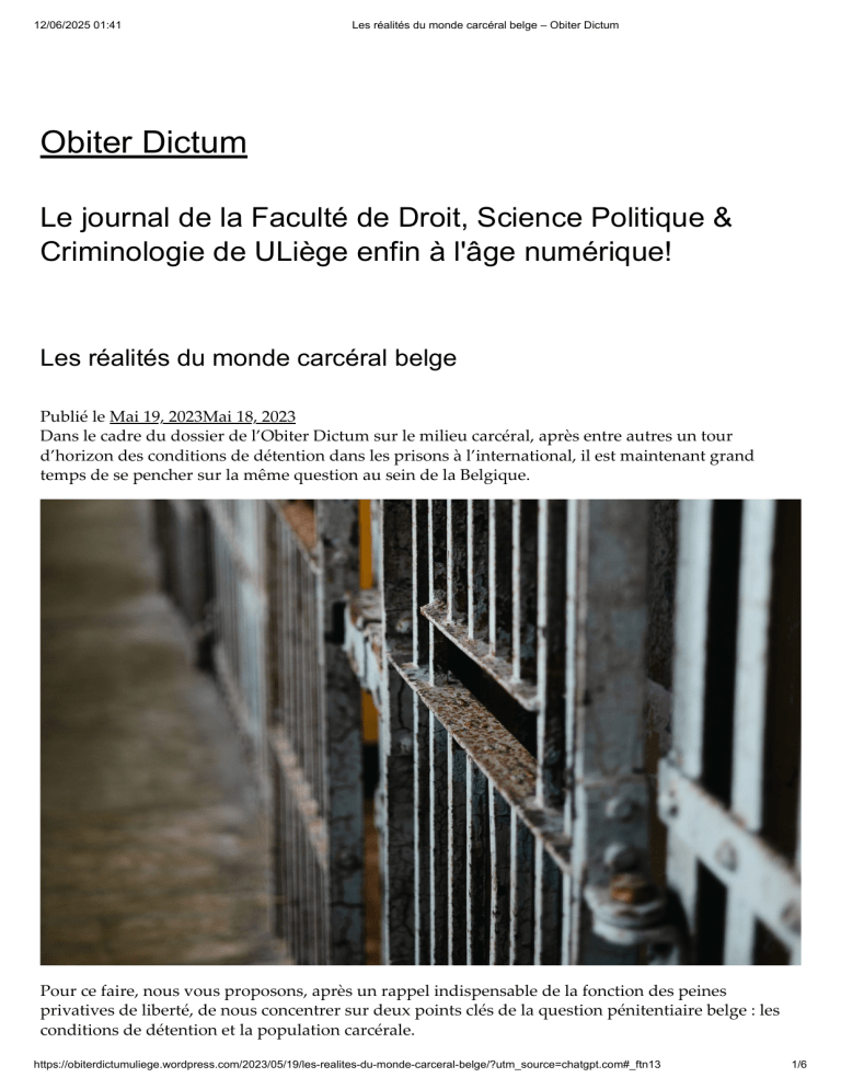 12/06/2025 01:41 Les réalités du monde carcéral bel