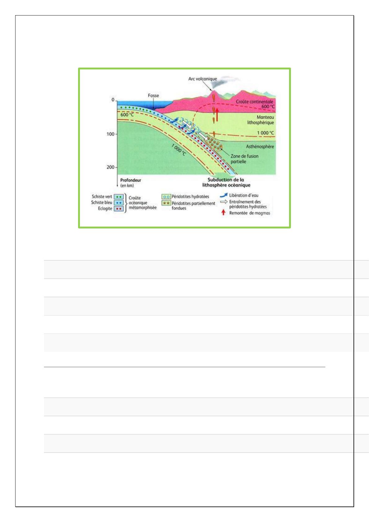 Evaluation N 1 sur La subduction et ses conséquences