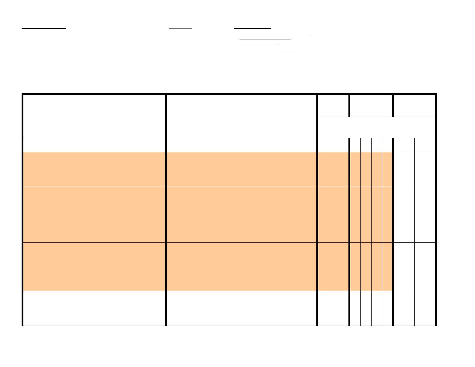column for each standard.
