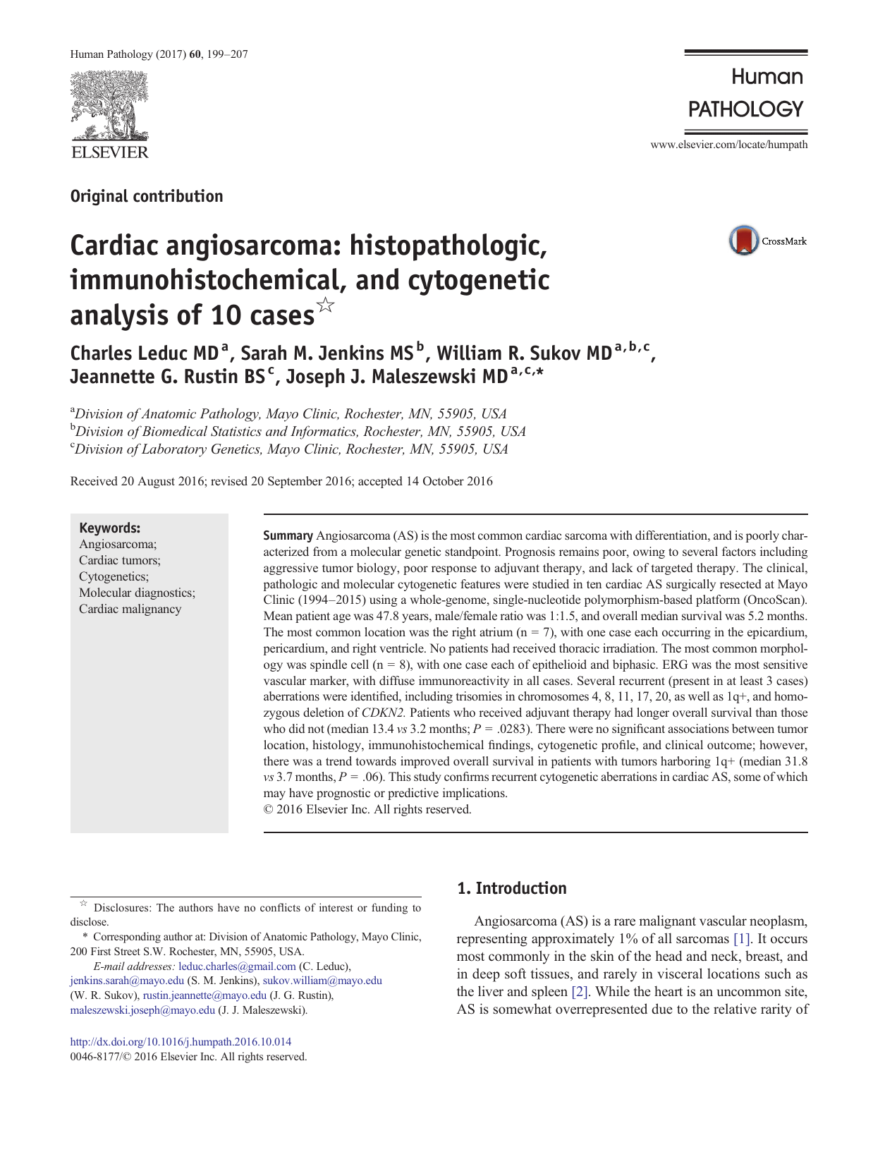 imately 40% of all cardiac sarcomas, and is thus the most com-