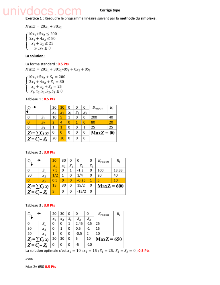 14/10 X1 +12/10 X2 350 (temps) (1.5 Pts)