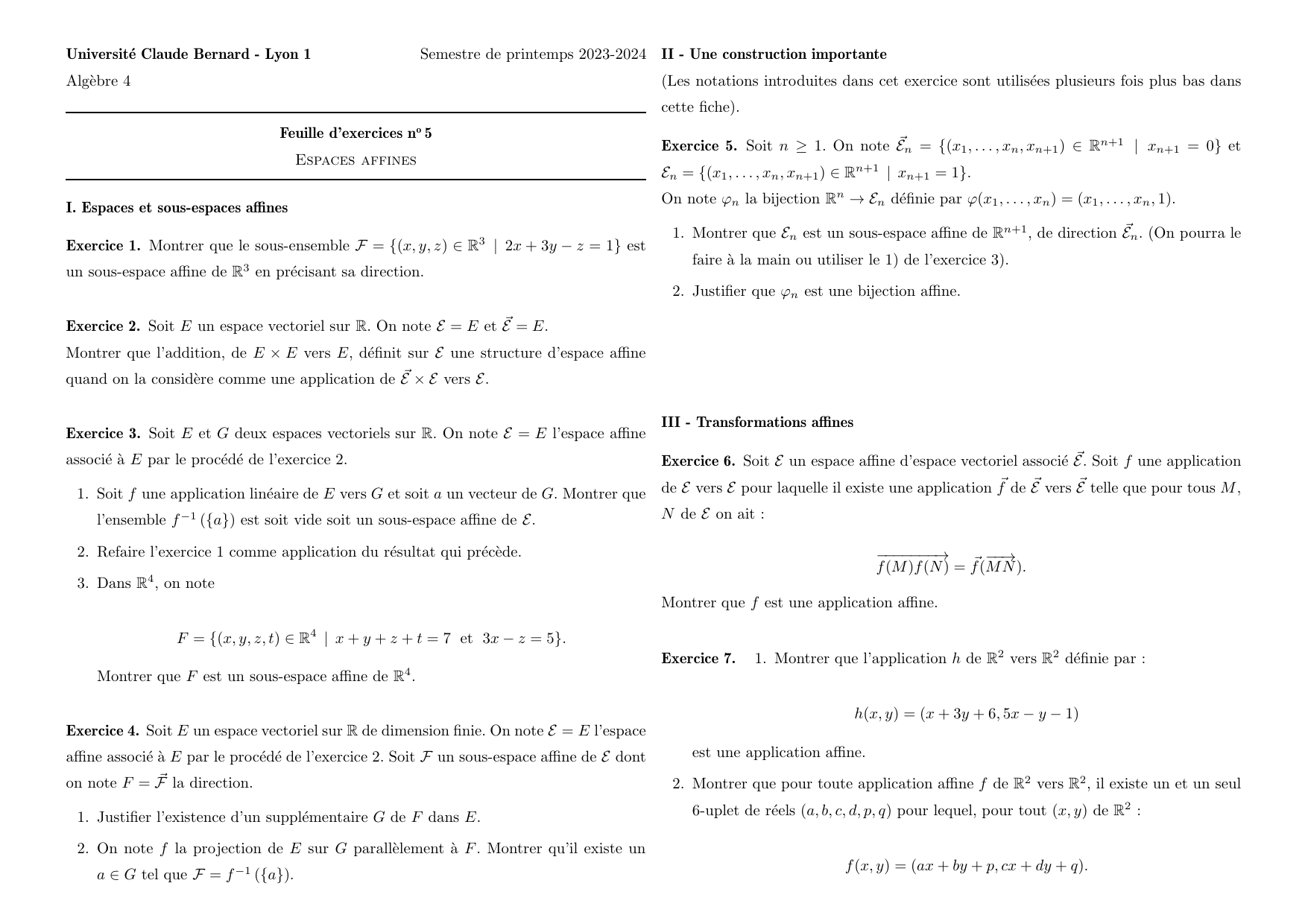 Exercice 8. Soit Eun espace affine.