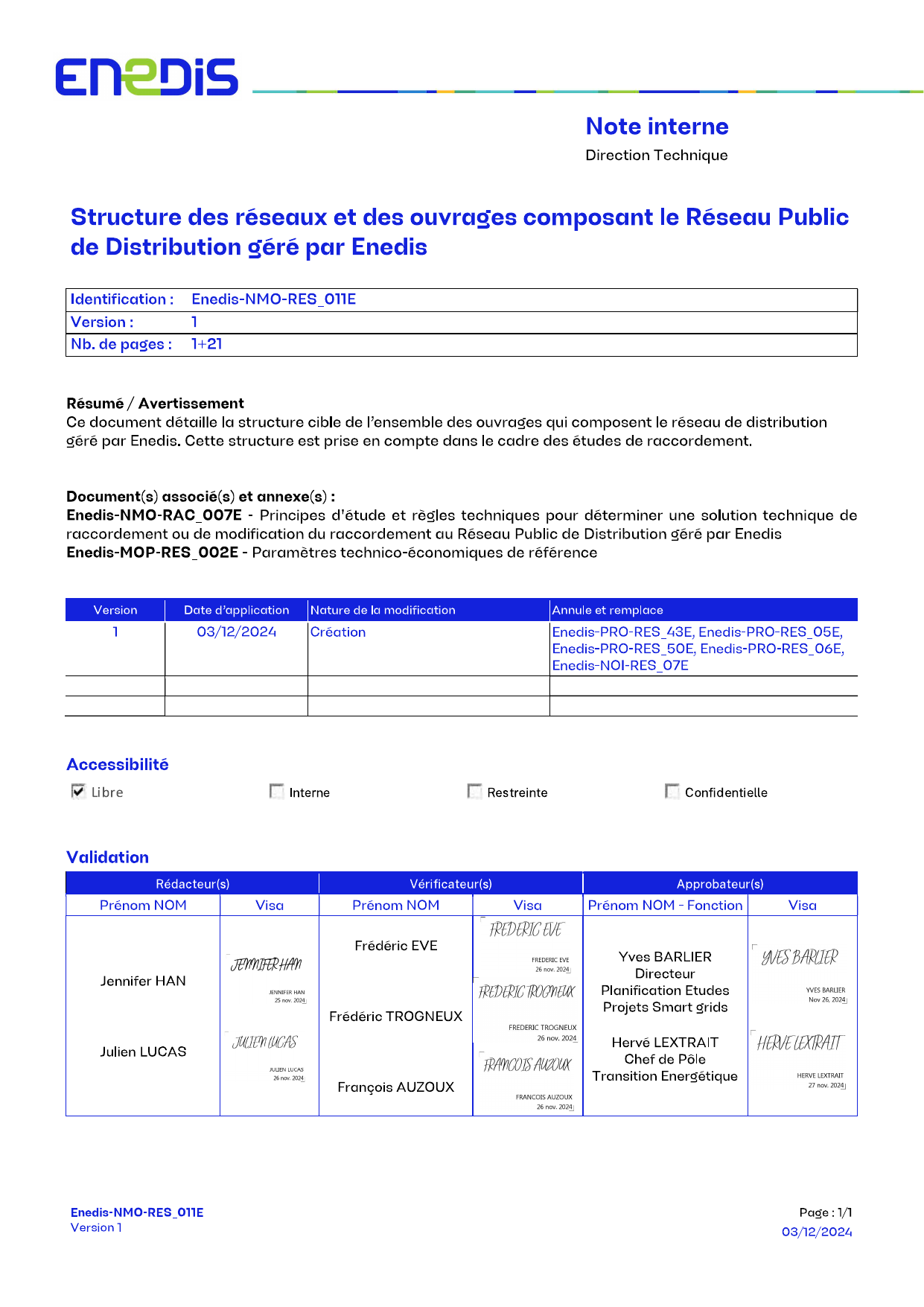 Structure des réseaux et des ouvrages composant le Réseau Public de Distribution géré par