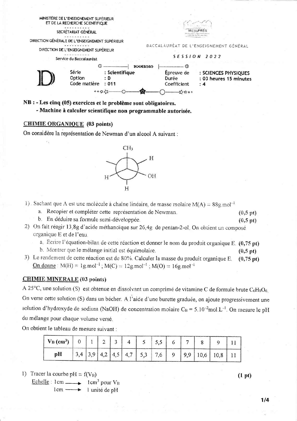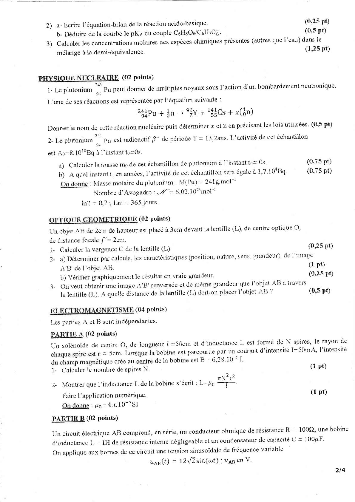2) a- Ecrire l'équation-biTme de ia réaction acido-ba'sique' {t}'25i pt)