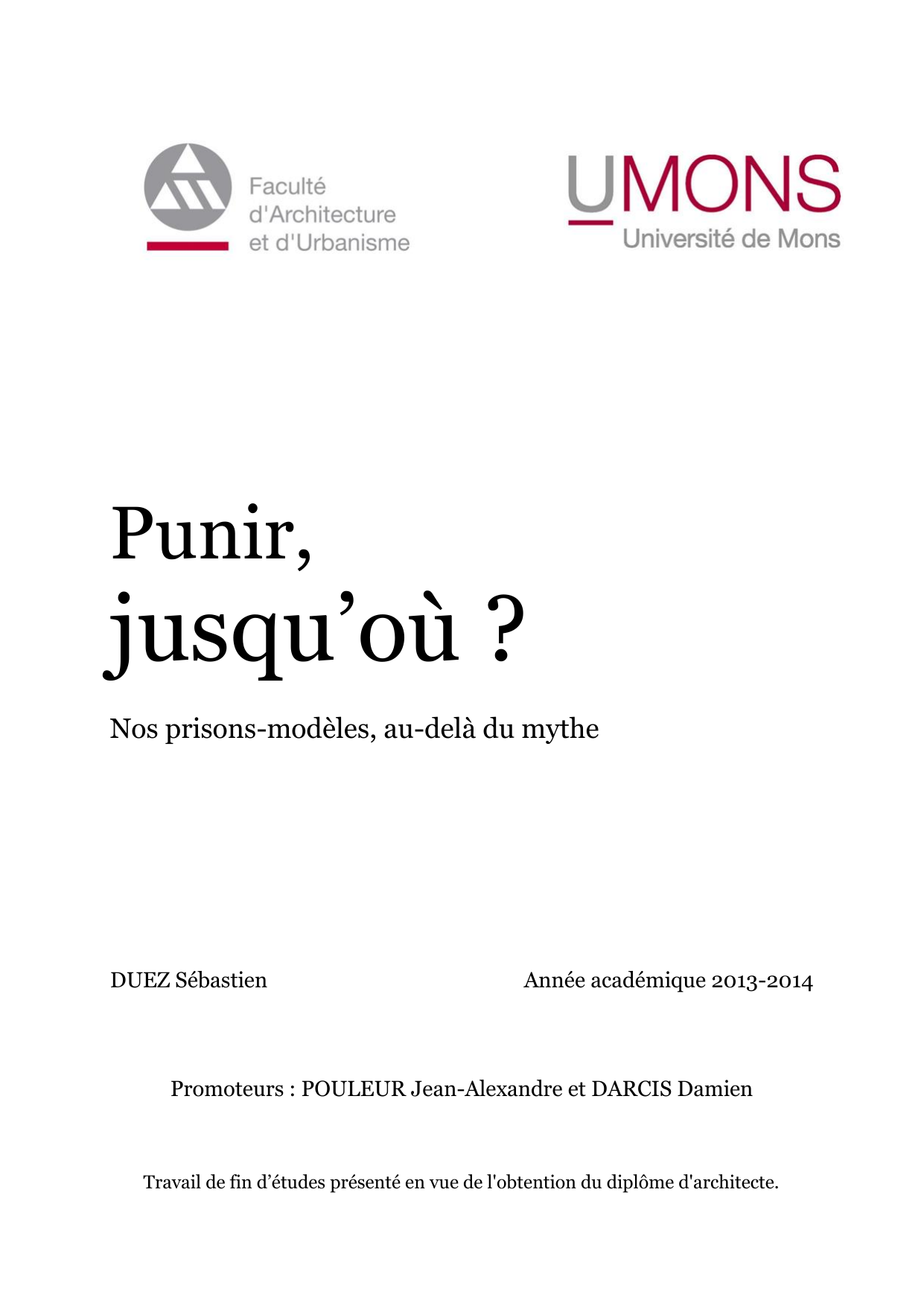 Titre de l’ouvrage : Punir, jusqu ? Nos prisons-modèles, au-delà du mythe
