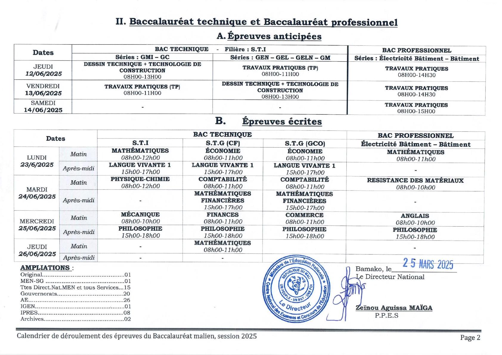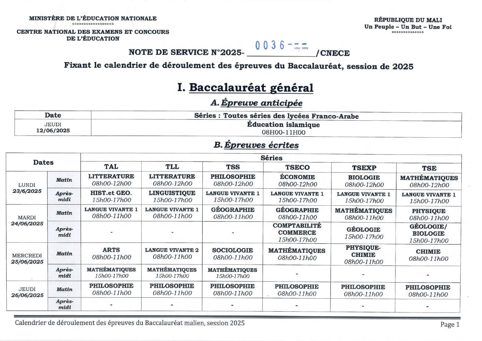 Calendrier Baccalauréat Mali 2025: Dates et Horaires des Examens