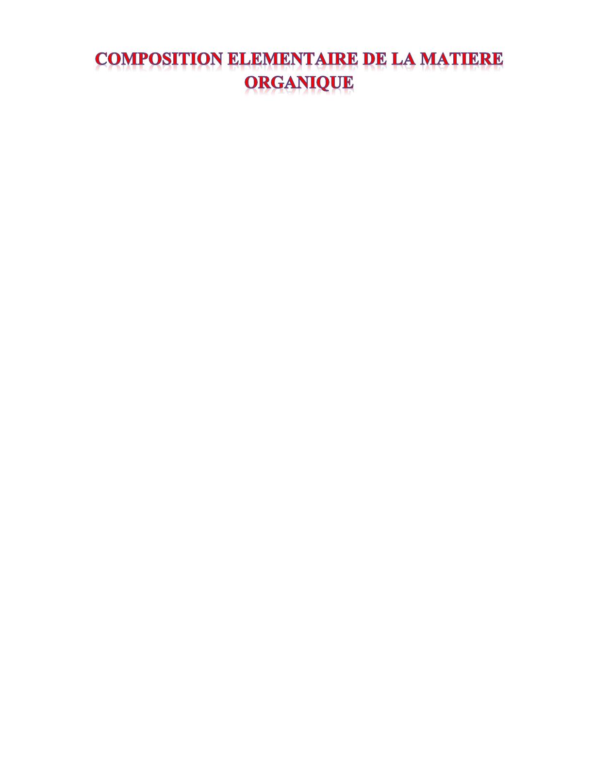 I- Eléments majeurs (C, H, O, N, S, P, Cl…)