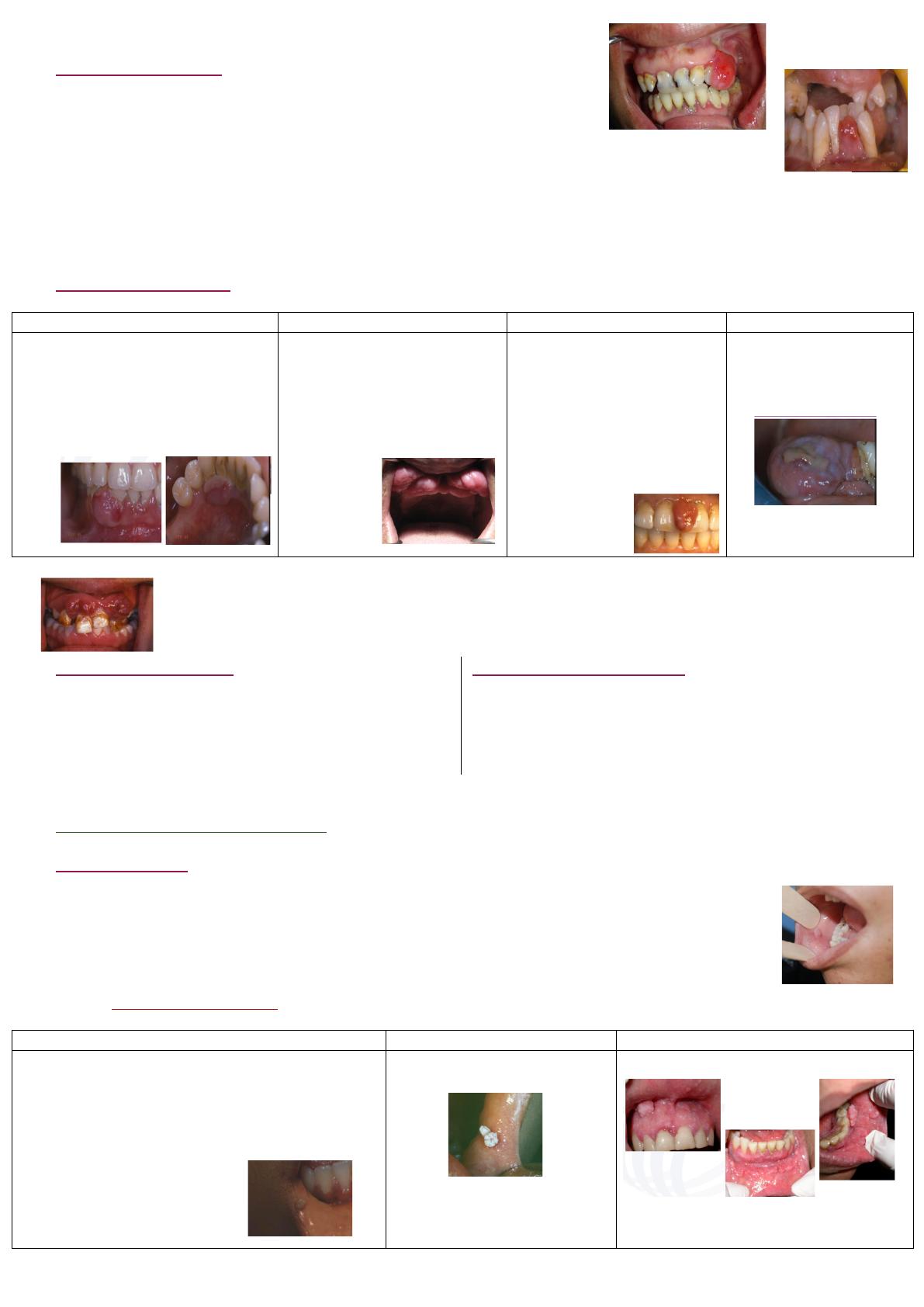 • Siège: lèvres, joues ( et non pas au niveau de la gencive)