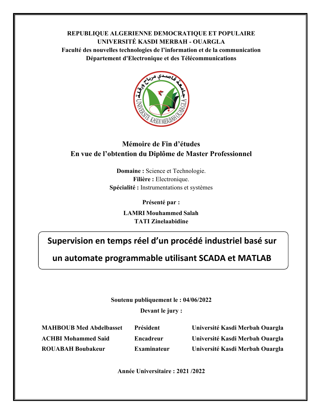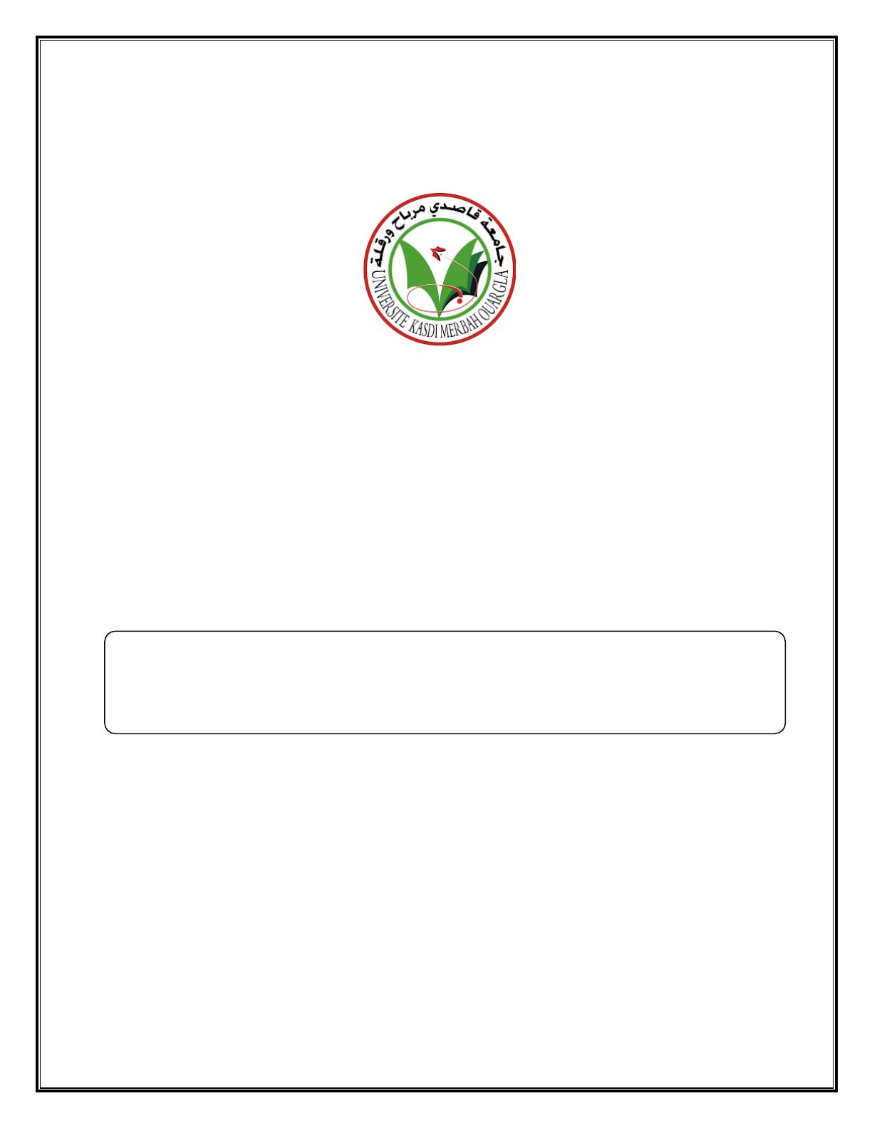 UNIVERSITÉ KASDI MERBAH - OUARGLA