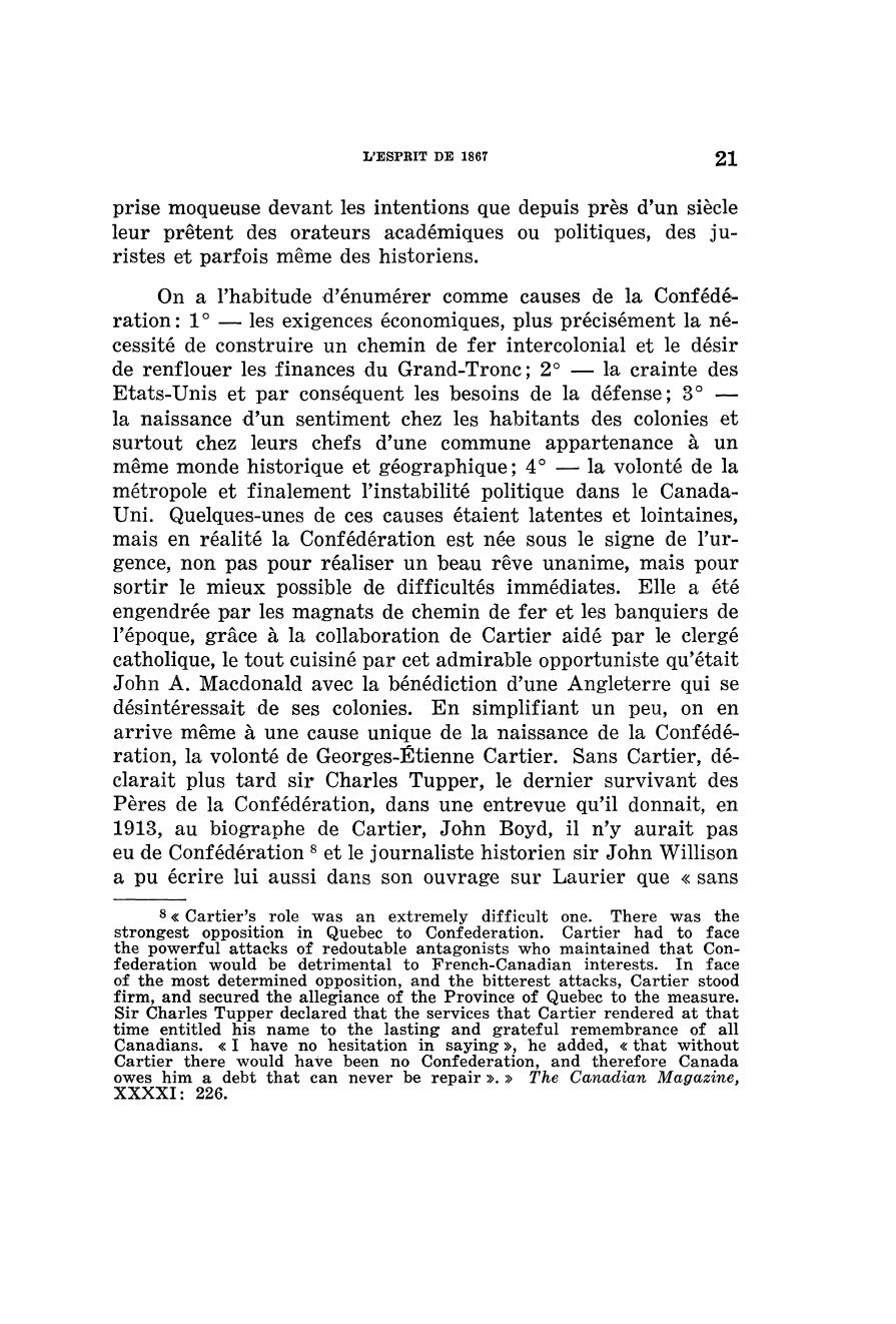 ration, la volonté de Georges-Etienne Cartier. Sans Cartier, dé-