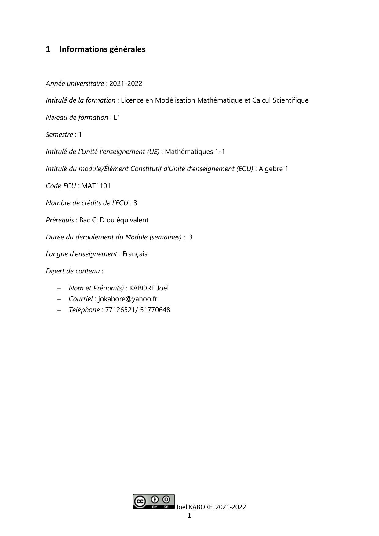 2.1 Objectifs généraux (Que voulez-vous que les étudiants soient capables de faire à la fin du module ?)