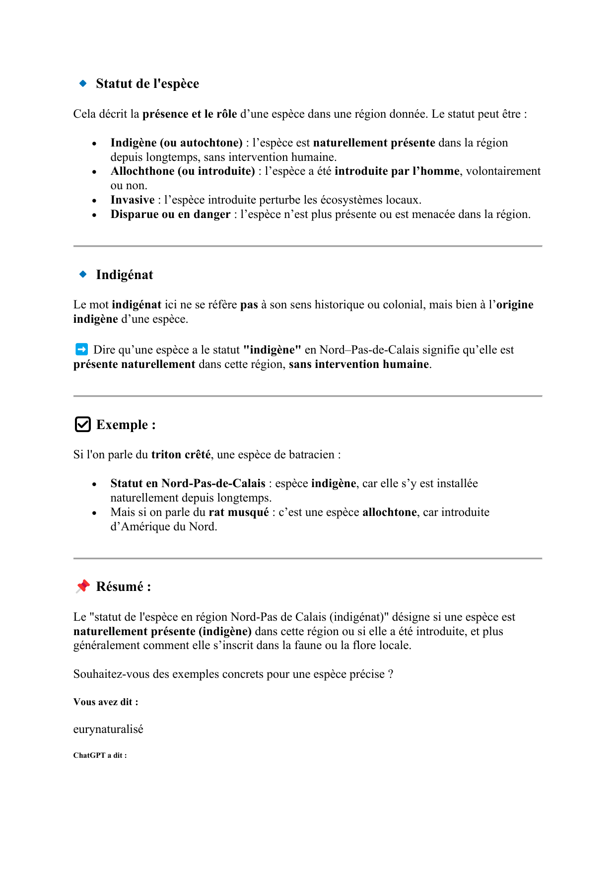 naturalistes (comme ceux de l’UICN ou du Muséum national d’Histoire naturelle).