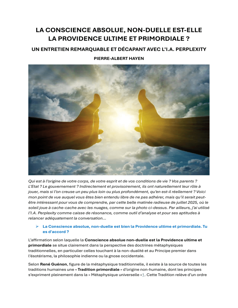 primordiale, si on entend par Providence l’Intelligence ou le Principe universel qui soutient tout