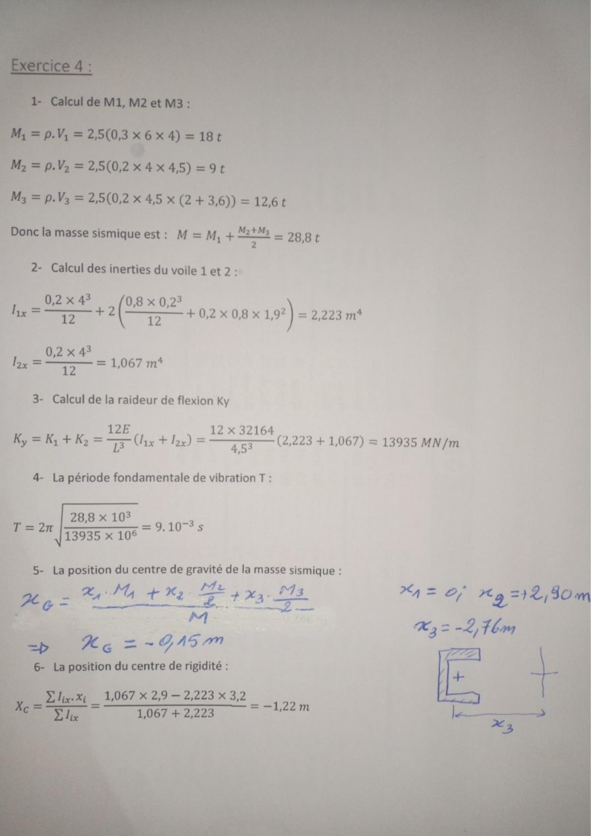 Exercice: Calcul sismique, inertie, raideur, centre de gravité