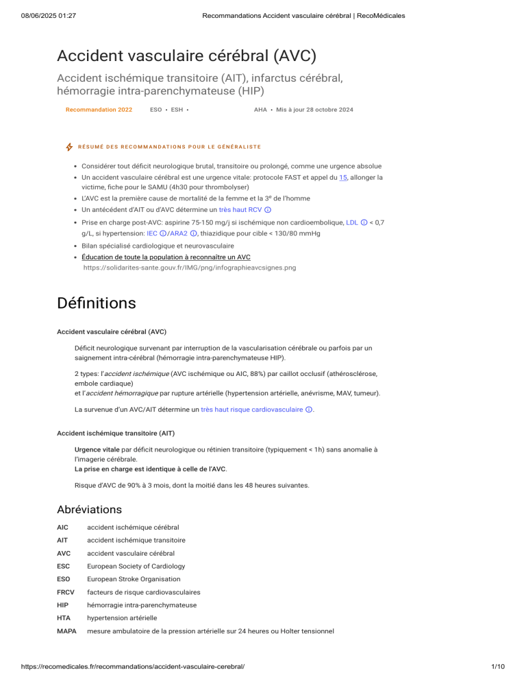 AVC sévère cliniquement (exemple NIHSS > 25) et/ou par imagerie.