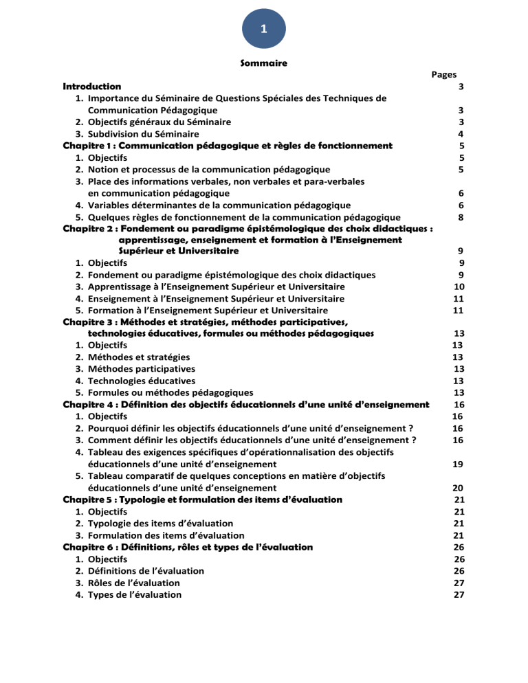 1) La communication pédagogique et ses règles de fonctionnement