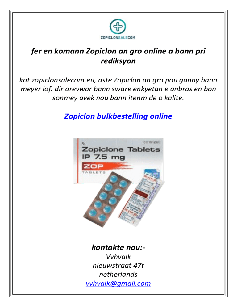 kot zopiclonsalecom.eu, aste Zopiclon an gro pou ganny bann