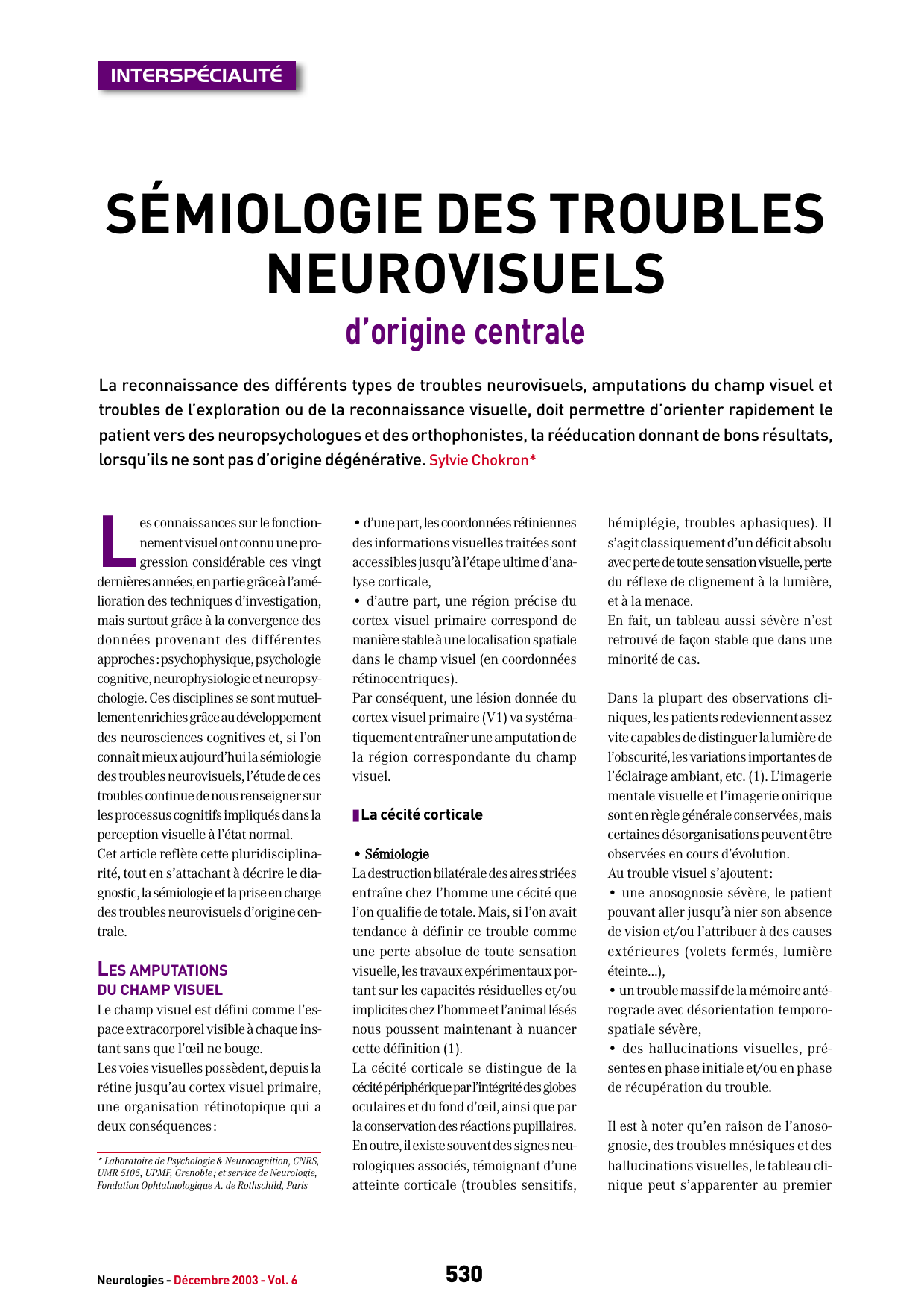 531 Neurologies - Décembre 2003 - Vol. 6
