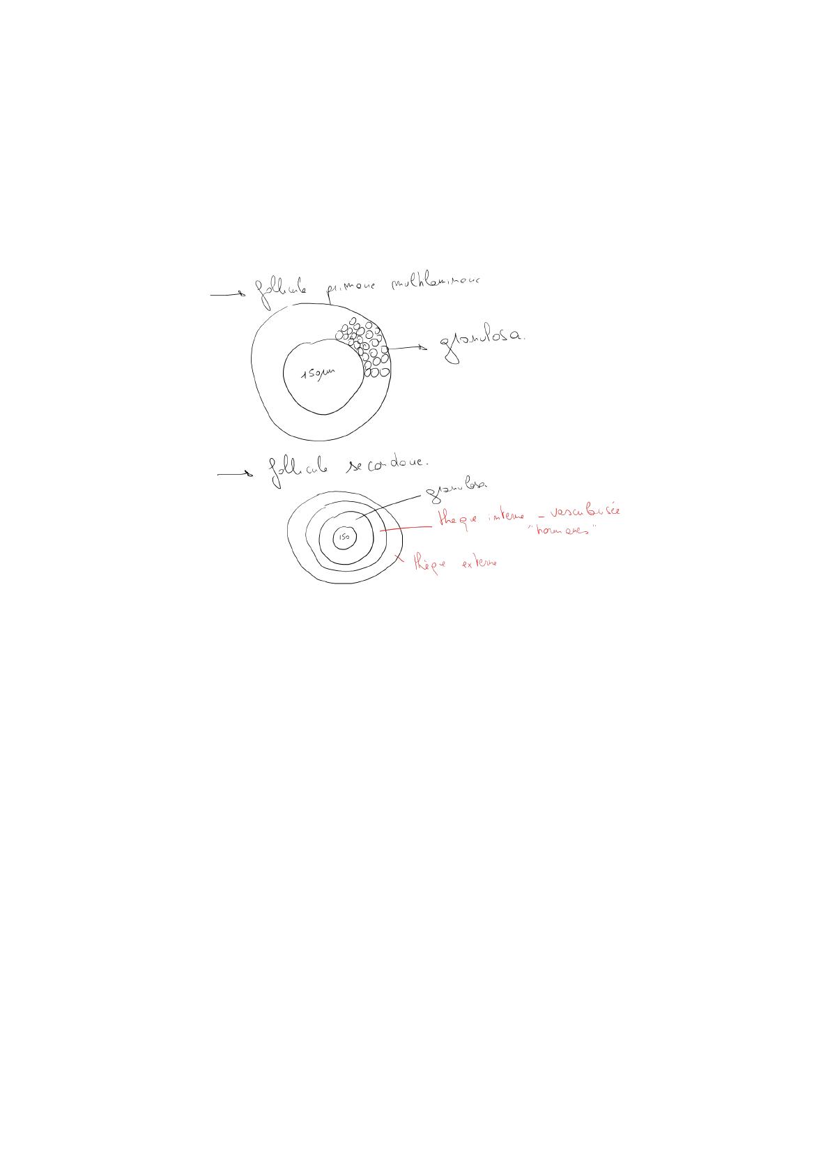 l’entièreté du follicule. Une fine couche de cellules persiste autours de l’ovocyte et s’appelle la corona radiata. A terme, l’ovocyte grandit jusqu’à