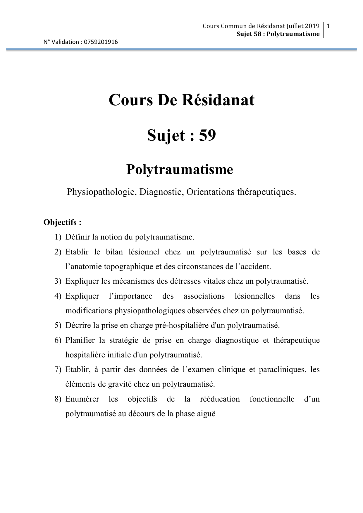 La traumatologie constitue un problème majeur de santé publique. L’évaluation de la gravité