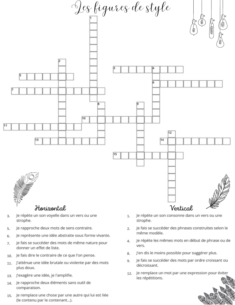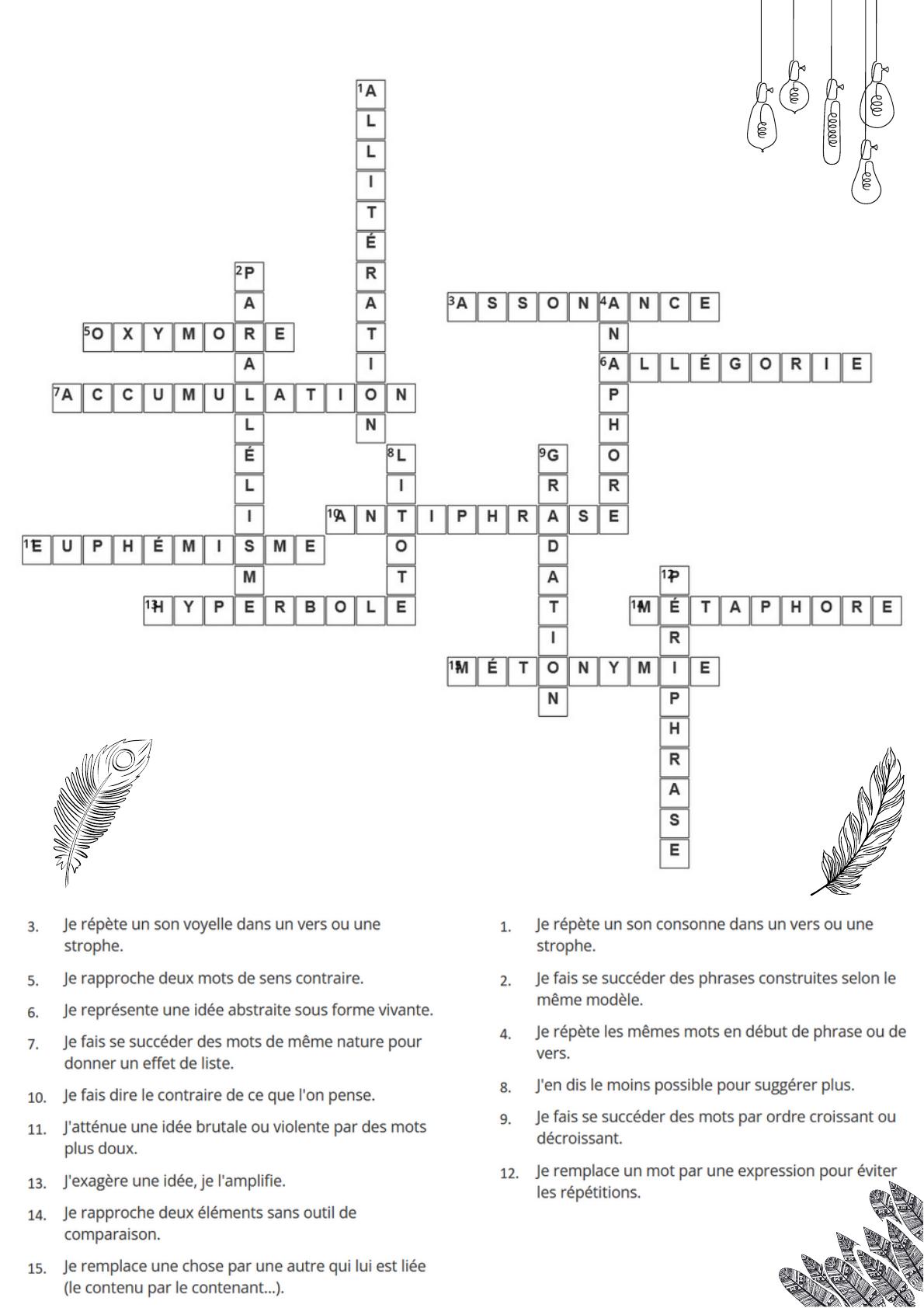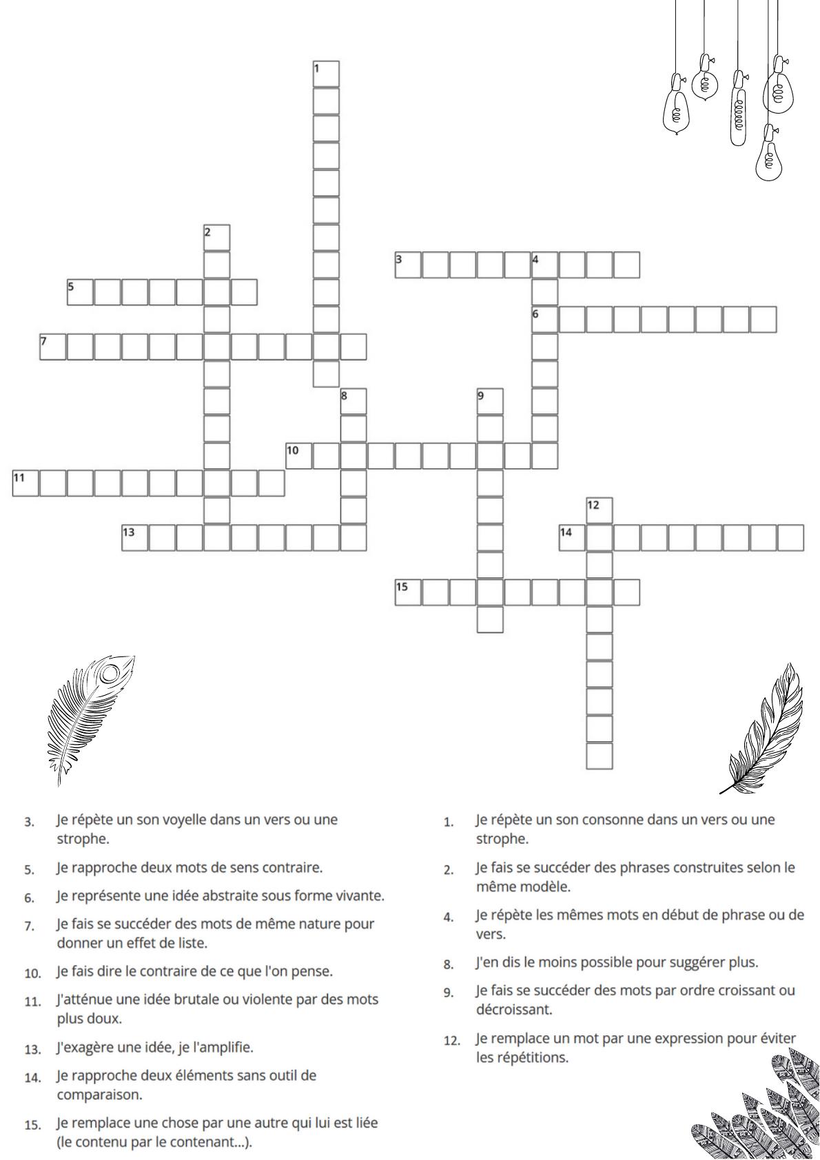 Mots Croisés: Figures de Style - Exercice Pédagogique