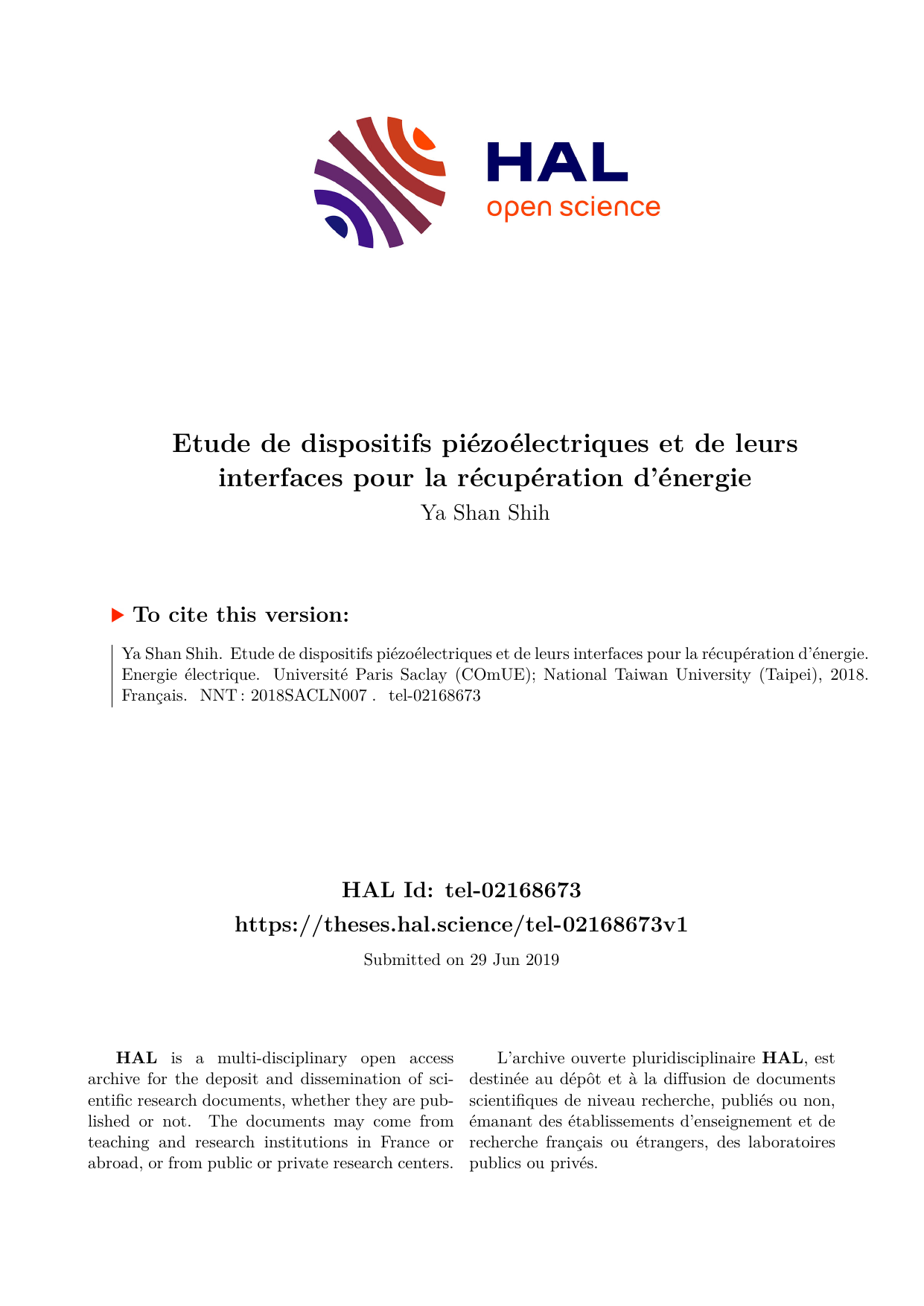 Ya Shan Shih. Etude de dispositifs piézoélectriques et de leurs interfaces pour la récupération d’énergie.