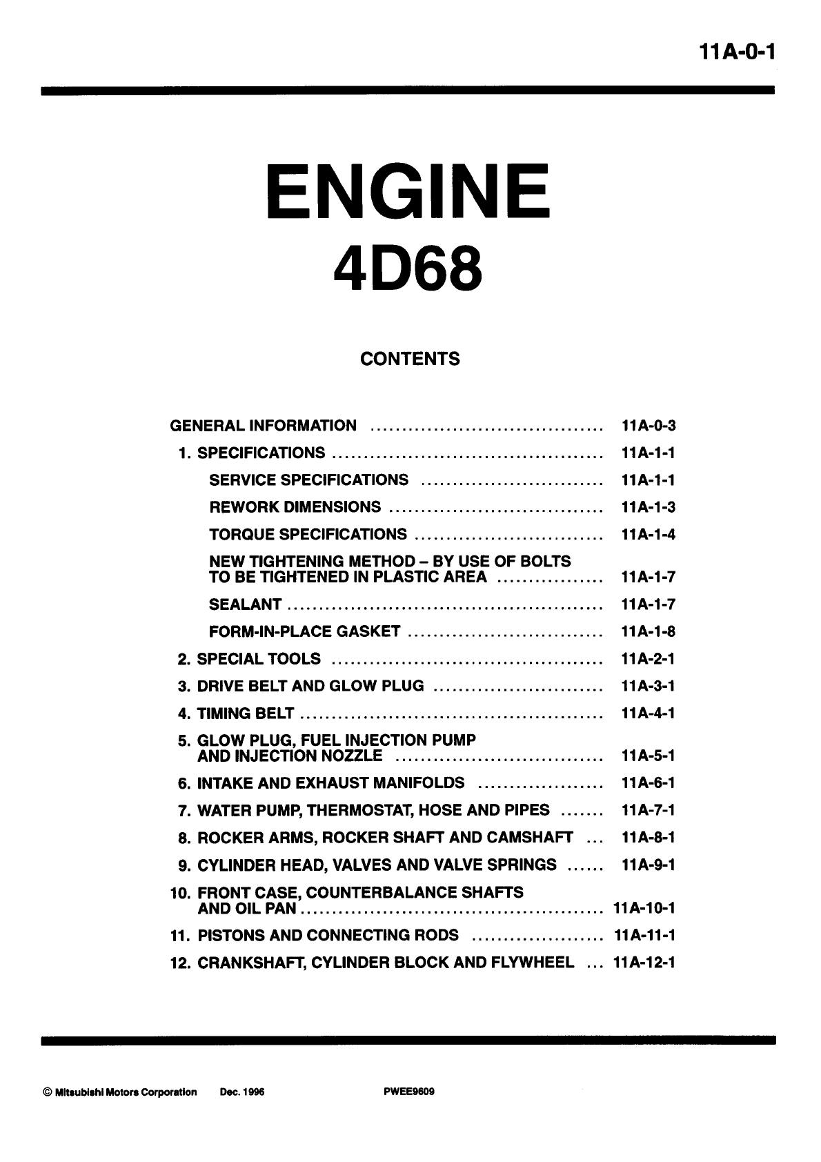 Mitsubishi 4D68 Engine Workshop Manual
