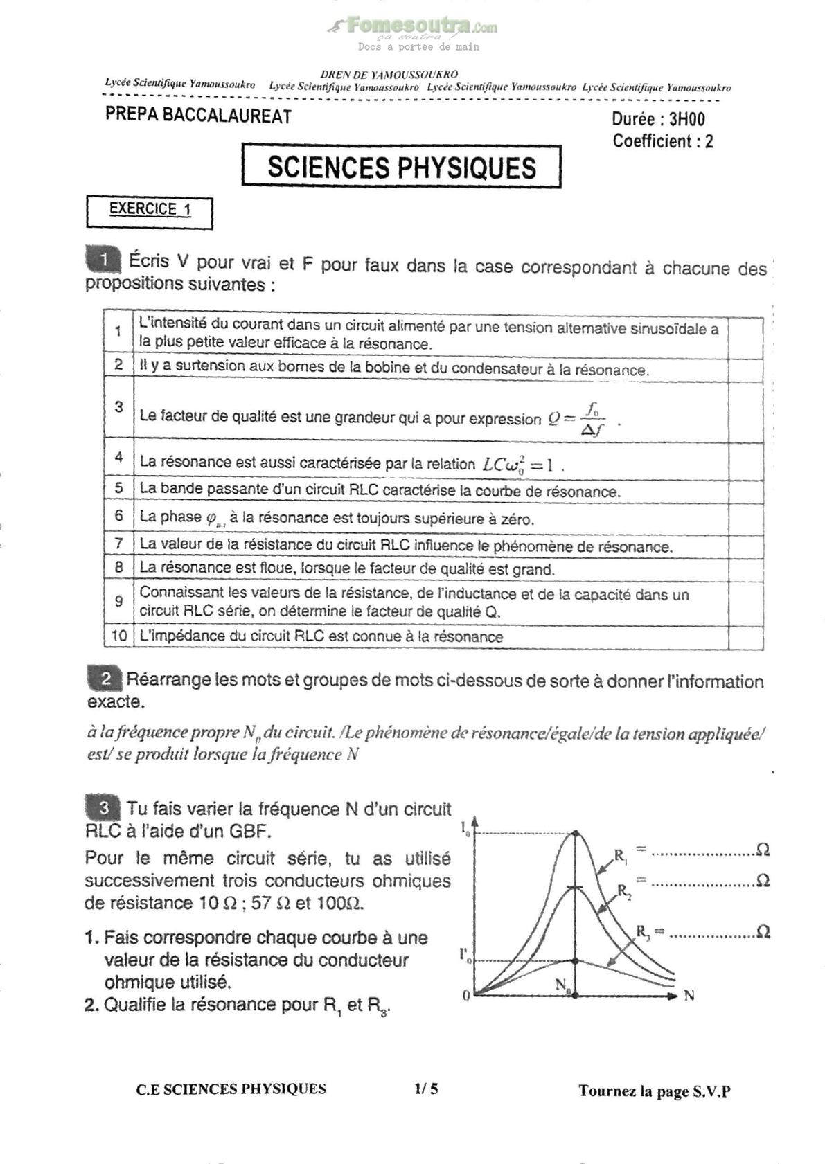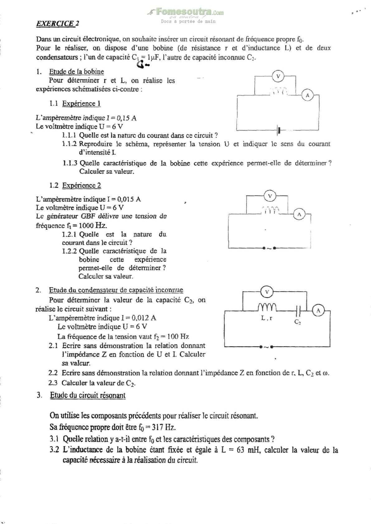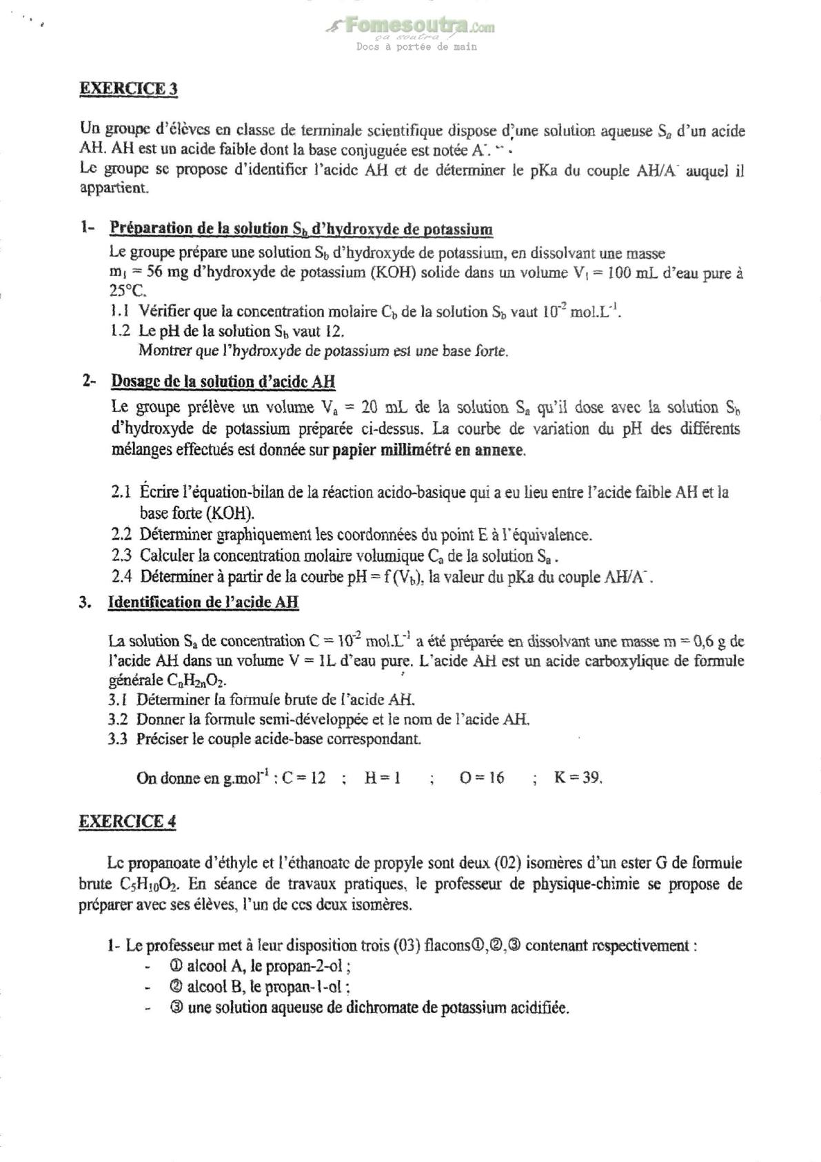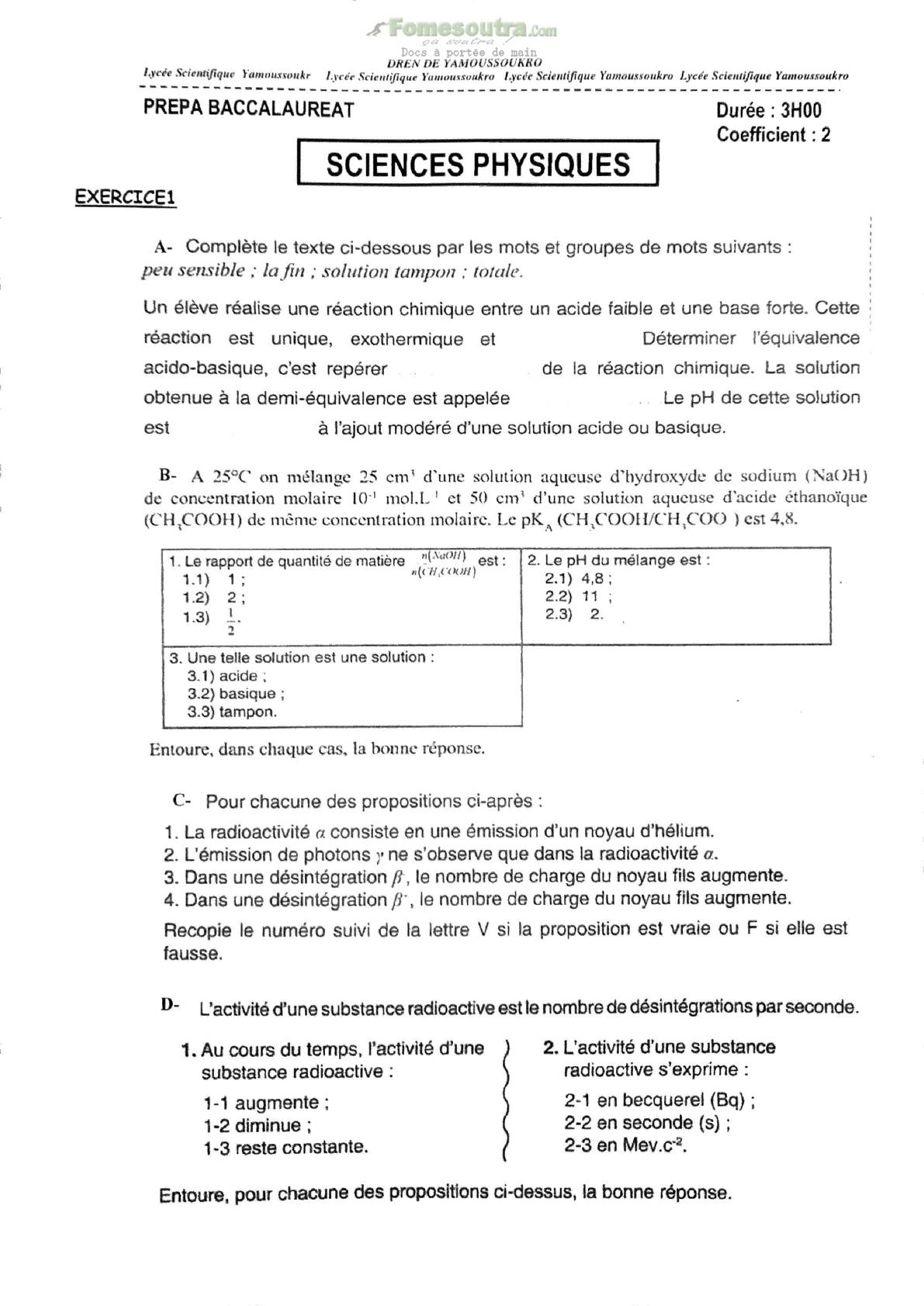 Exercices de Sciences Physiques - Prépa Baccalauréat