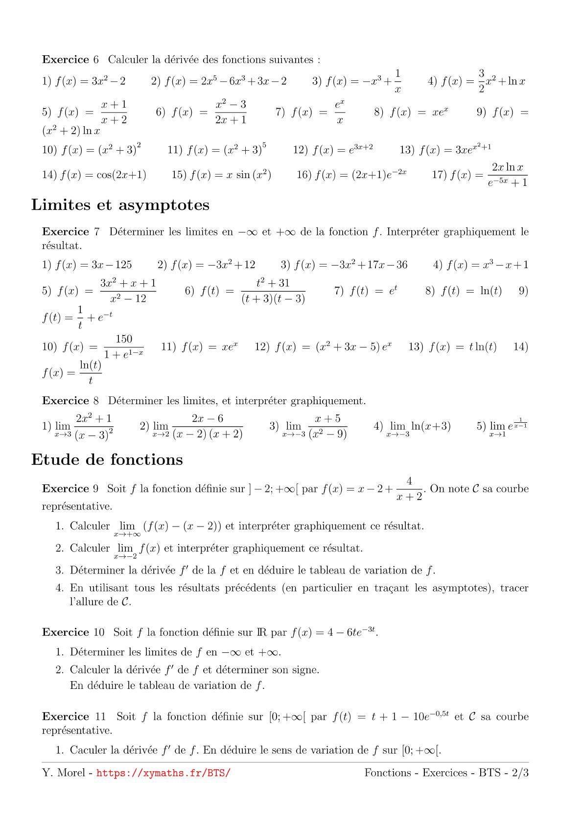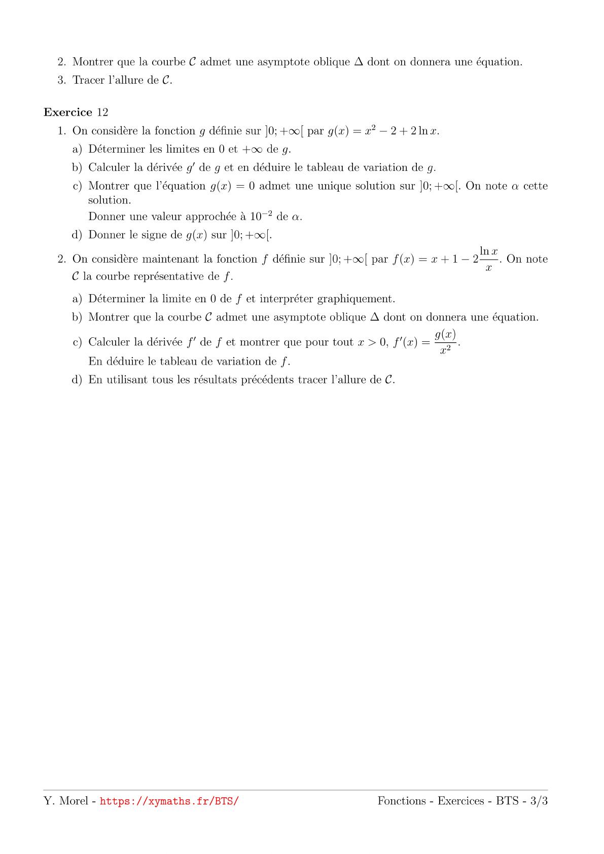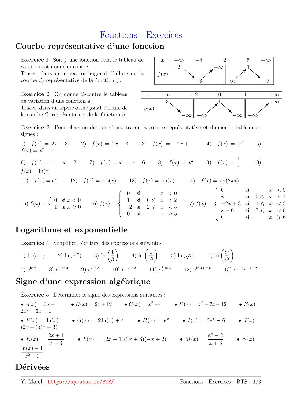Fonctions, Logarithmes, Exponentielles : Exercices de Maths