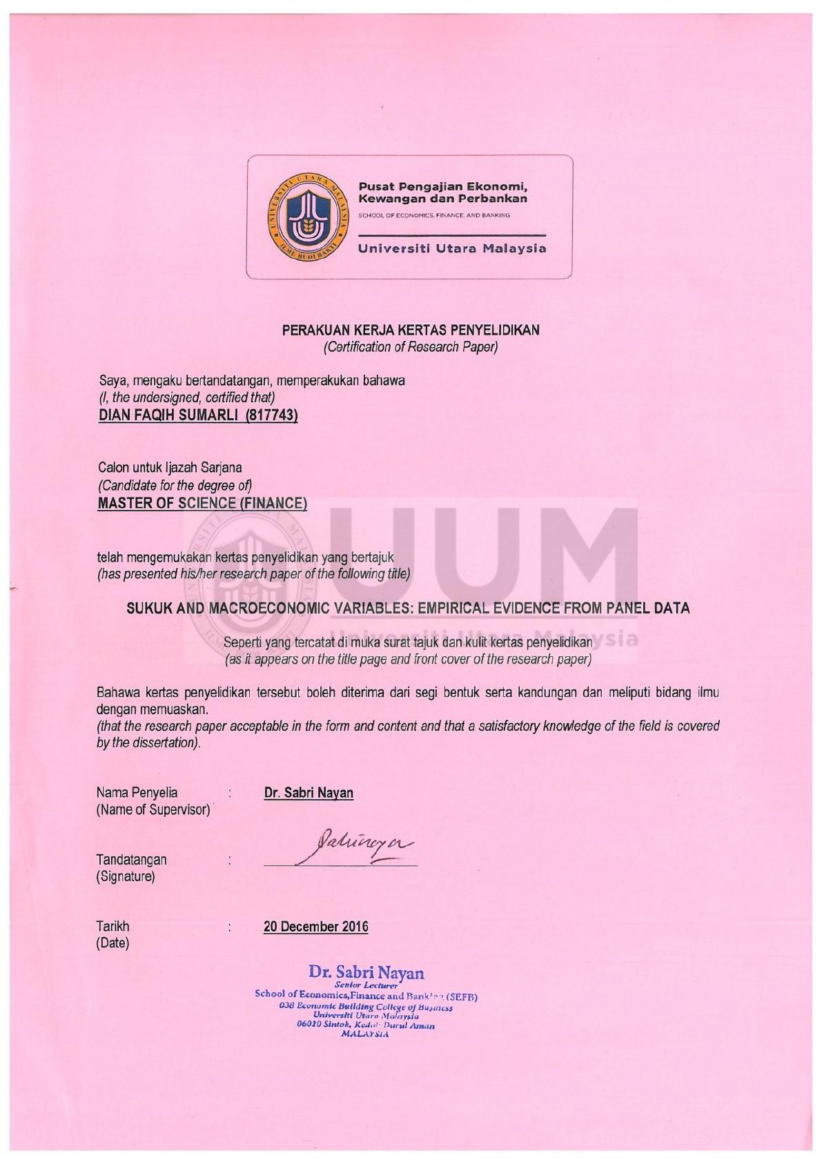 Graduate degree from the Universiti Utara Malaysia (UUM). I agree that the Library